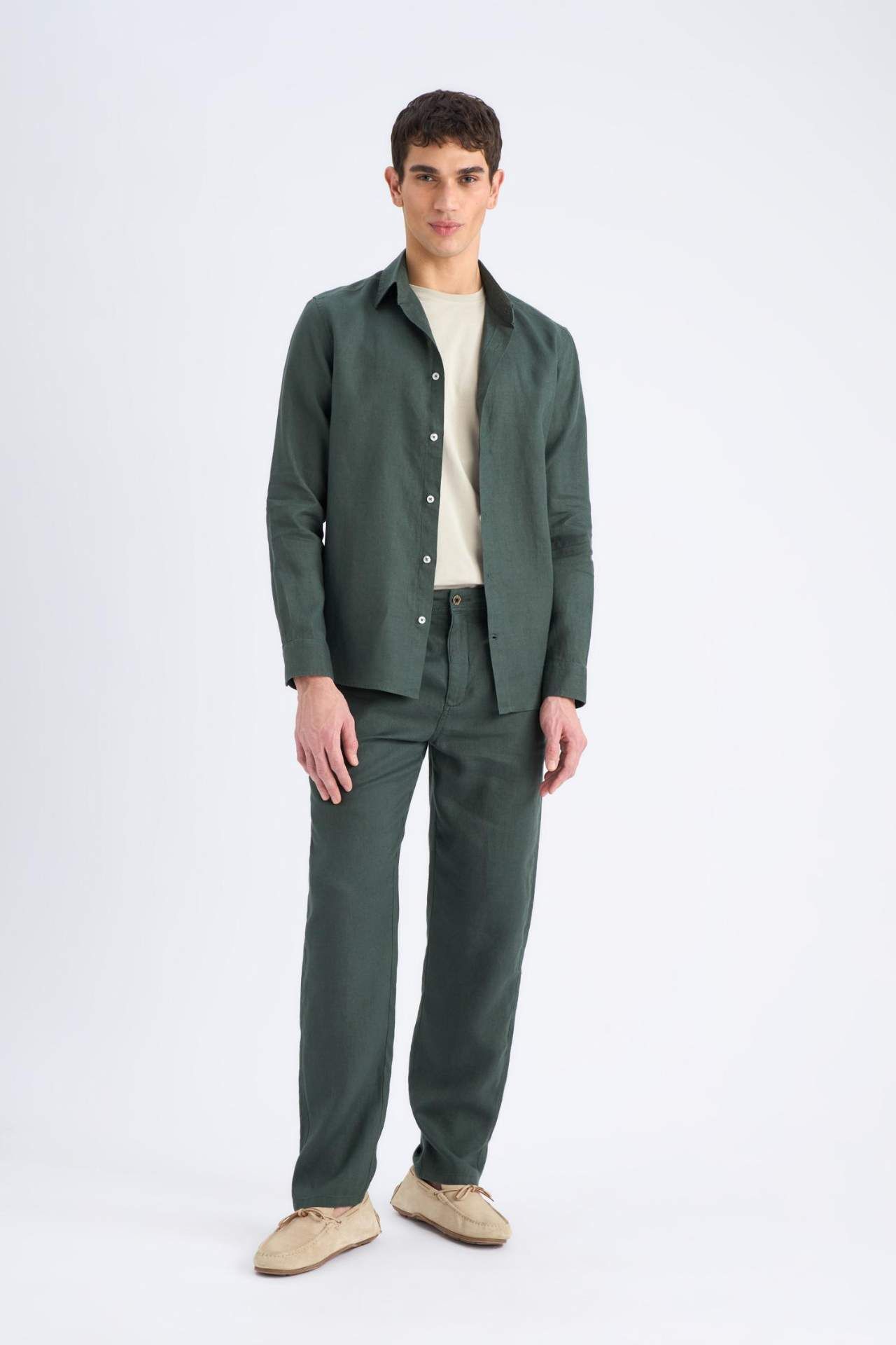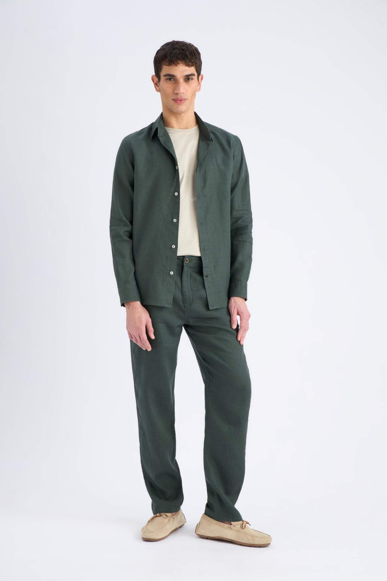 DeFacto Relax Fit Rahat Kesim Düz Paça Yazlık Keten Pantolon C1117AX25SPKH498