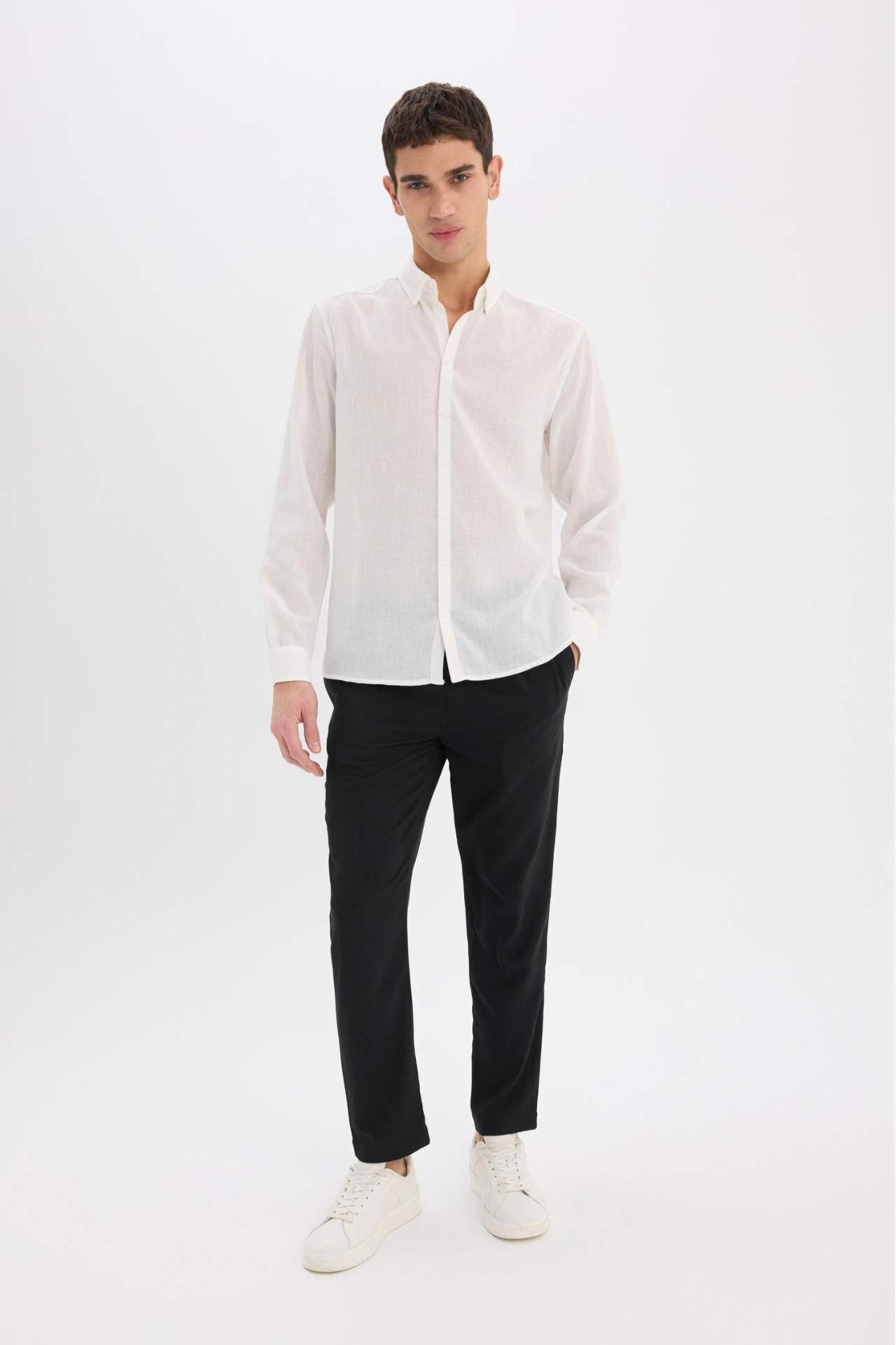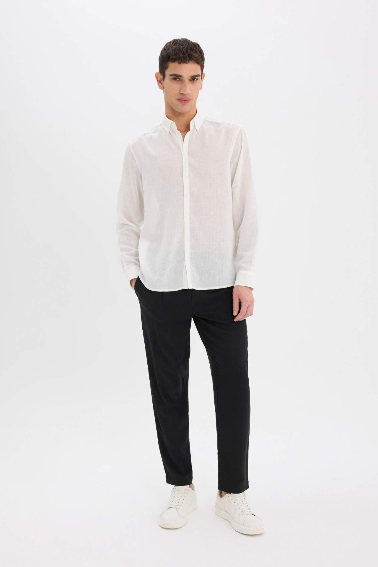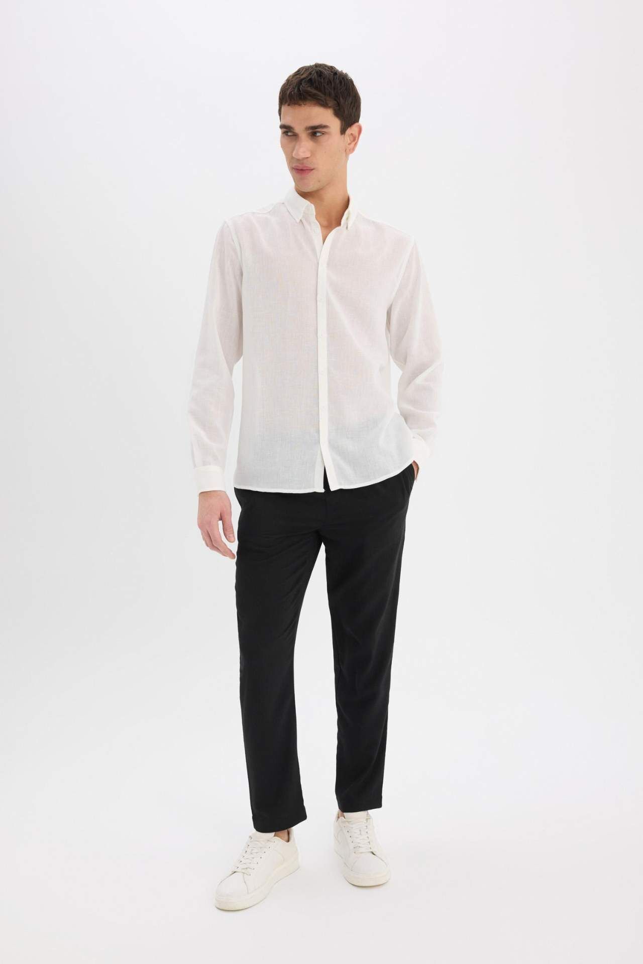 DeFacto Relax Fit Rahat Kesim Kısa Paça Keten Görünümlü Yazlık Kumaş Pantolon E4790AX25SMBK27