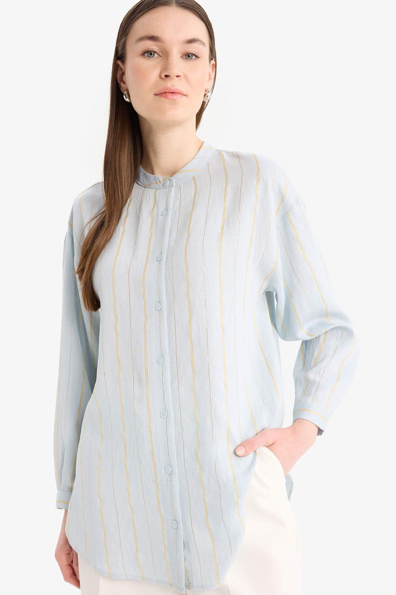 DeFacto Relax Fit Simli Kumaş Uzun Kollu Tunik