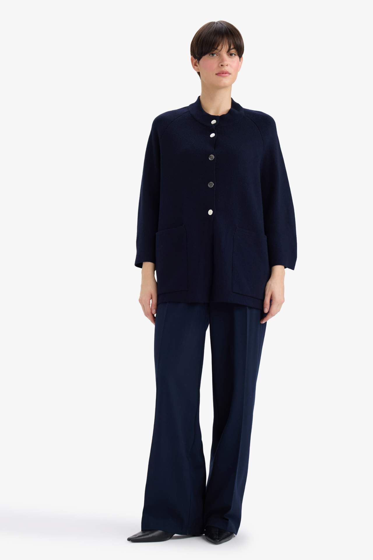 Relax fit V yaka triko hırka, rahat kesimi ve sade tasarımıyla günlük kombinlerde şık bir görünüm sunar. Yumuşak ve esnek dokusuyla konforlu bir kullanım sağlar. Akrilik 100%,Akrilik 100%,Akrilik 100%,Akrilik 100%,Akrilik 100%,Akrilik 100%,Akrilik 100% Manken Bedeni: Göğüs: 85 Boy: 1,7 Basen: 88 Bel: 60