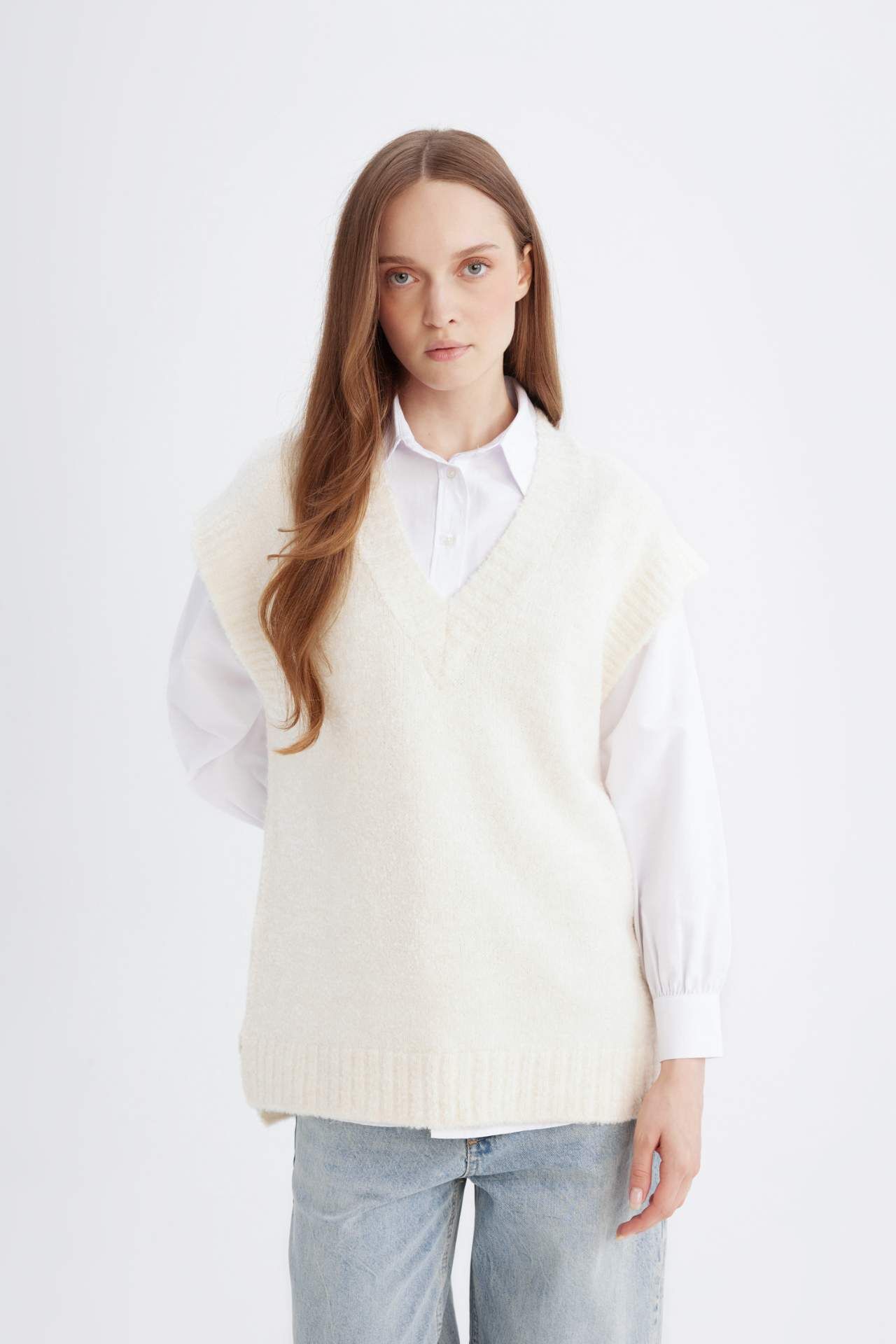 Relax Fit V Yaka Basic Düz Triko Süveter, şıklığı ve rahatlığı bir arada sunuyor. Yumuşak kumaşı ve geniş kesimiyle her bedene uyum sağlar, kat kat giyinmeye mükemmel bir zemin hazırlar. Farklı kombinlere kolayca uyum sağlayarak kış stilinize sıcaklık ve zarafet katacak! Akrilik 79%,Poliester 21%