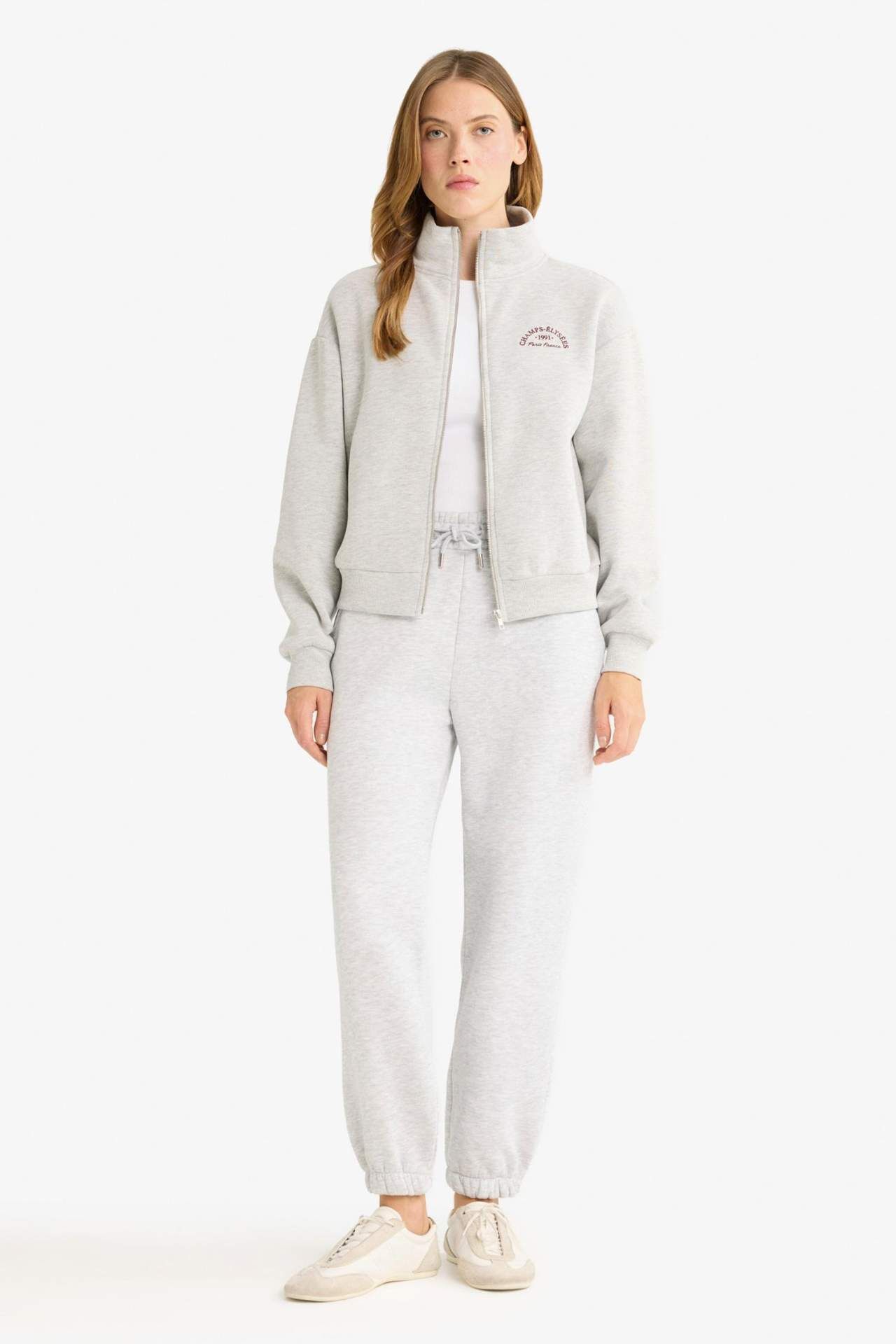 DeFacto Relax Fit Yarım Balıkçı Yaka Baskılı Kalın Fermuarlı Sweatshirt F7890AX25AUGR93