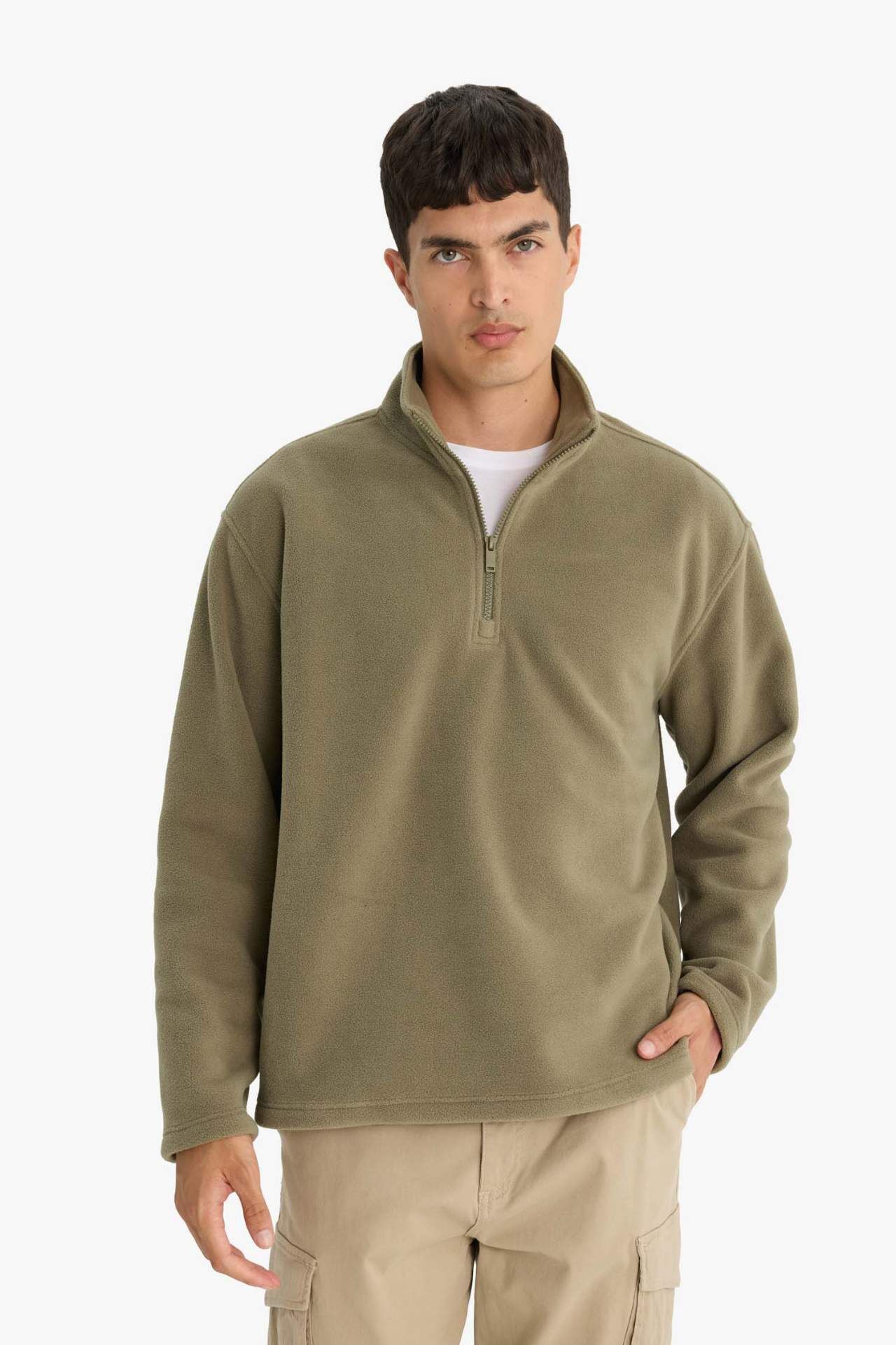 Relax Fit Yarım Fermuarlı Polar Sweatshirt