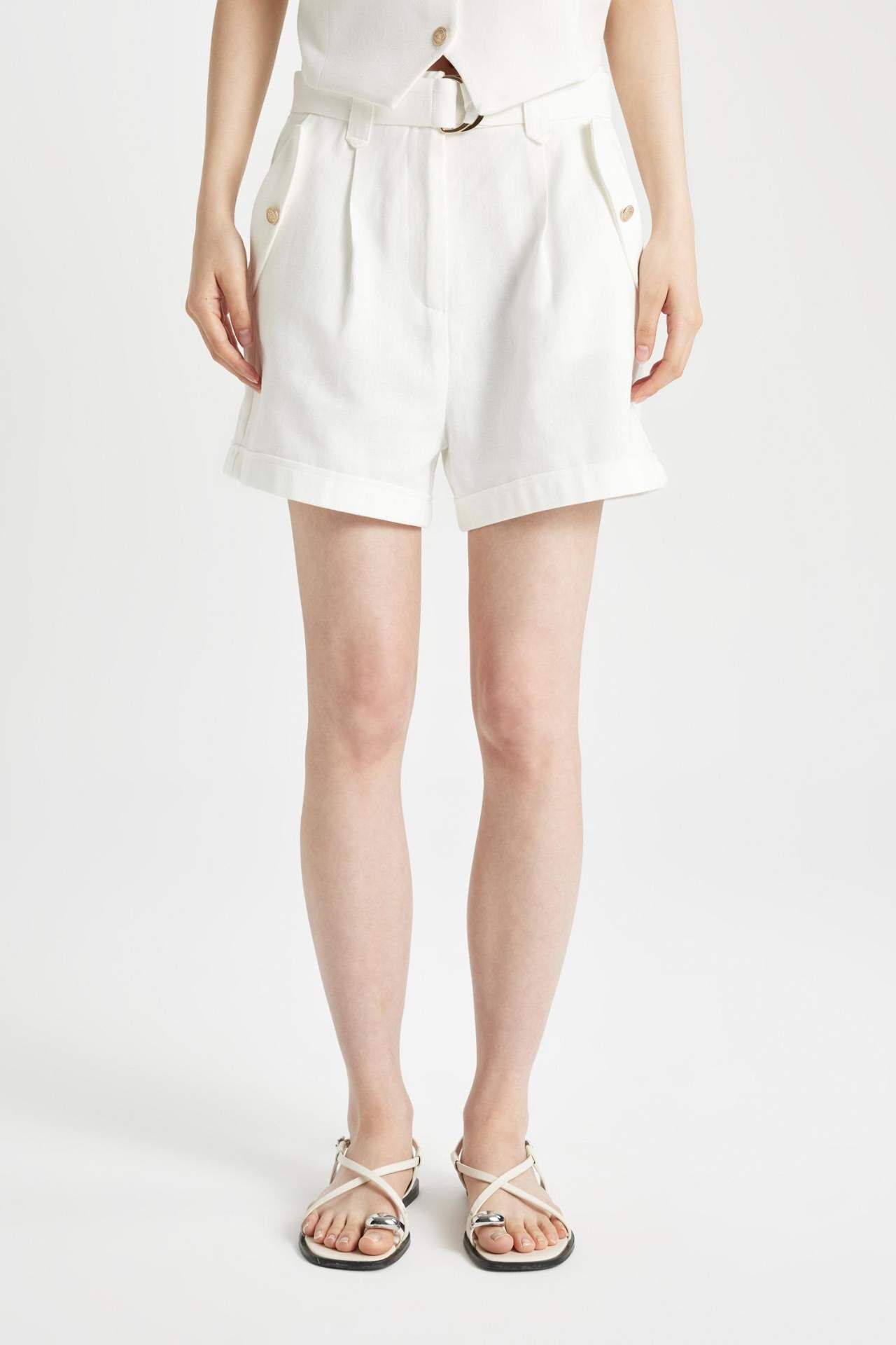 DeFactoFit Relax Fit Yüksek Bel Crop Fit Keten Karışımlı Şort