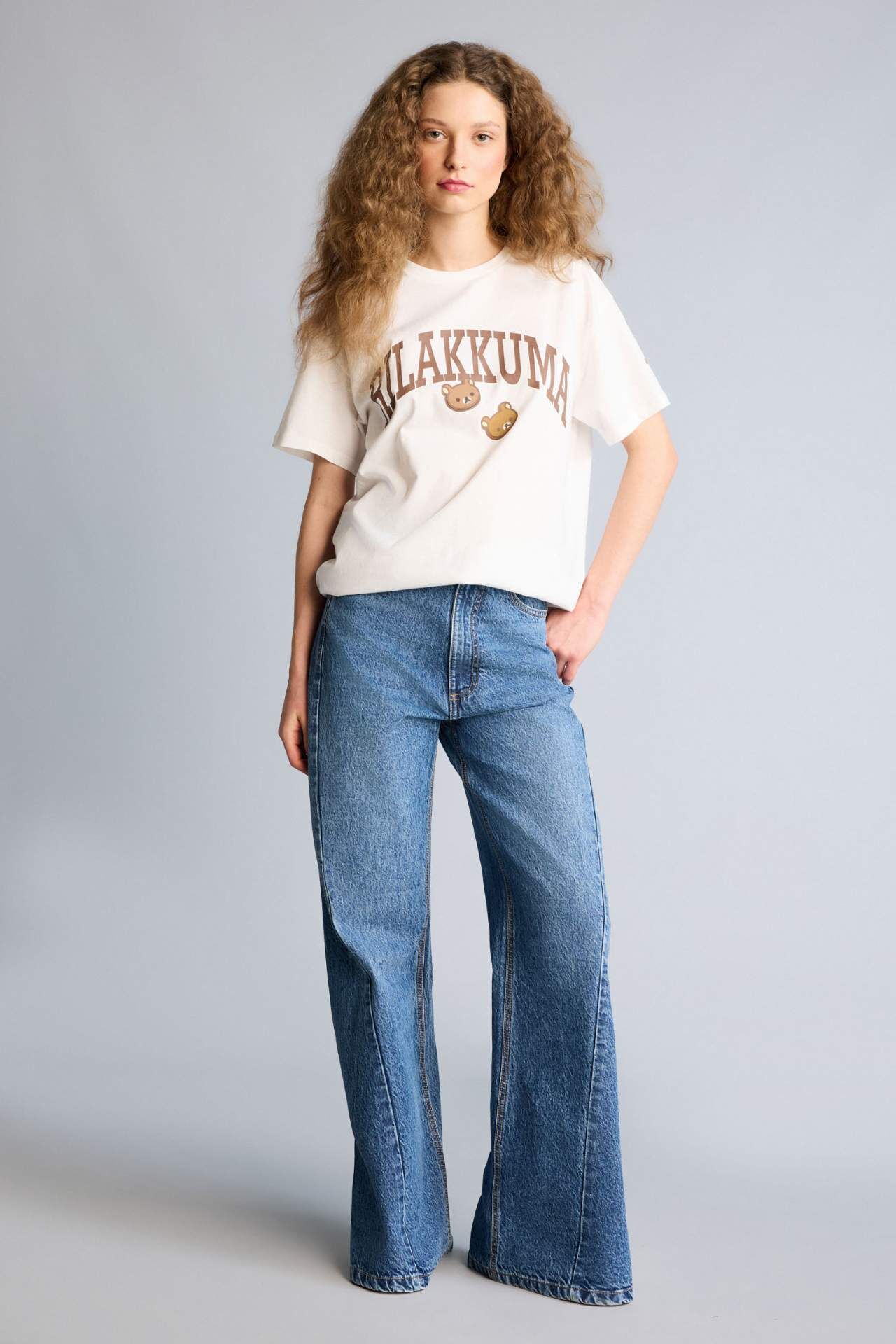 Rilakkuma Oversıze Bisiklet Yaka Baskılı Kısa Kollu Tişört