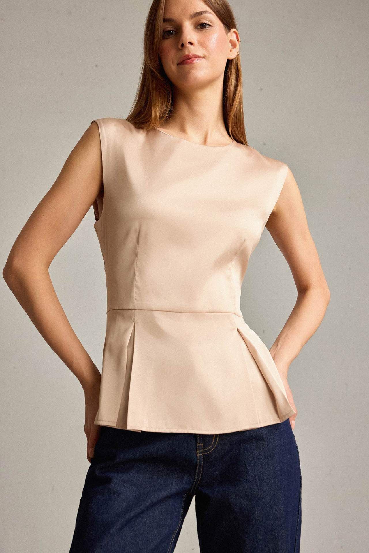 Zarif dokusuyla öne çıkan saten kolsuz bluz, ışıltılı ve feminen bir görünüm sunar. Hafif yapısı sayesinde hem günlük kombinlerde hem de özel davetlerde rahatça tercih edilebilir. Yuvarlak yakası ve sade kesimiyle kolayca şıklık sağlar. Etek, pantolon ya da blazer ceketlerle şık kombinler yaratmak çok kolay. Elastan 3%,Poliester 97%,Elastan 3%,Poliester 97%,Elastan 3%,Poliester 97%,Elastan 3%,Poliester 97%,Elastan 3%,Poliester 97%,Elastan 3%,Poliester 97%,Elastan 3%,Poliester 97% Manken Bedeni: Göğüs: 84 Boy: 1,74 Basen: 90 Bel: 60