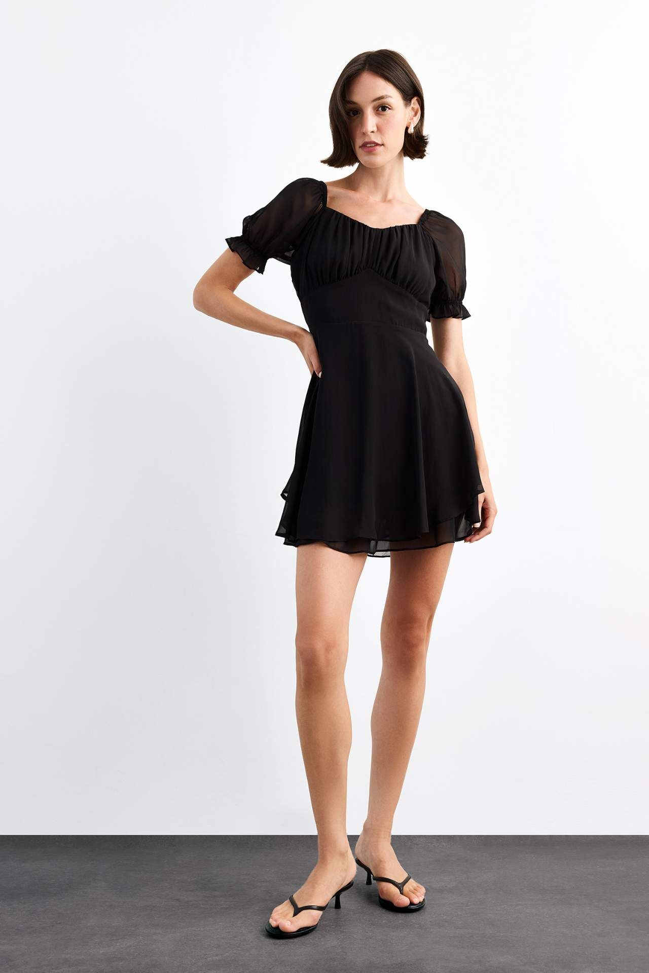 Şifon Kısa Kollu Mini Elbise