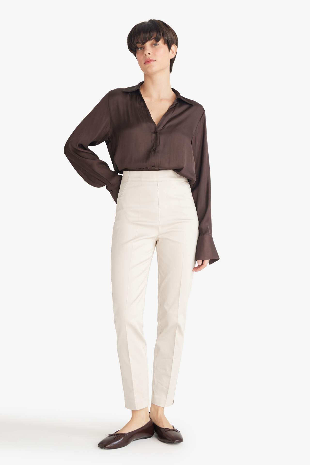 Kaliteli ve sürdürülebilir Saten Pantolon. Normal Bel ve Lastikli kapama detayı ile rahat kullanım sağlar. Düz paça tasarımı ile şık bir görünüm sunar. Bej rengi ile her tarza uyum sağlar. İlkbahar/Yaz sezonu için ideal bir seçim. Pamuk 69%,Elastan 4%,Poliester 27%