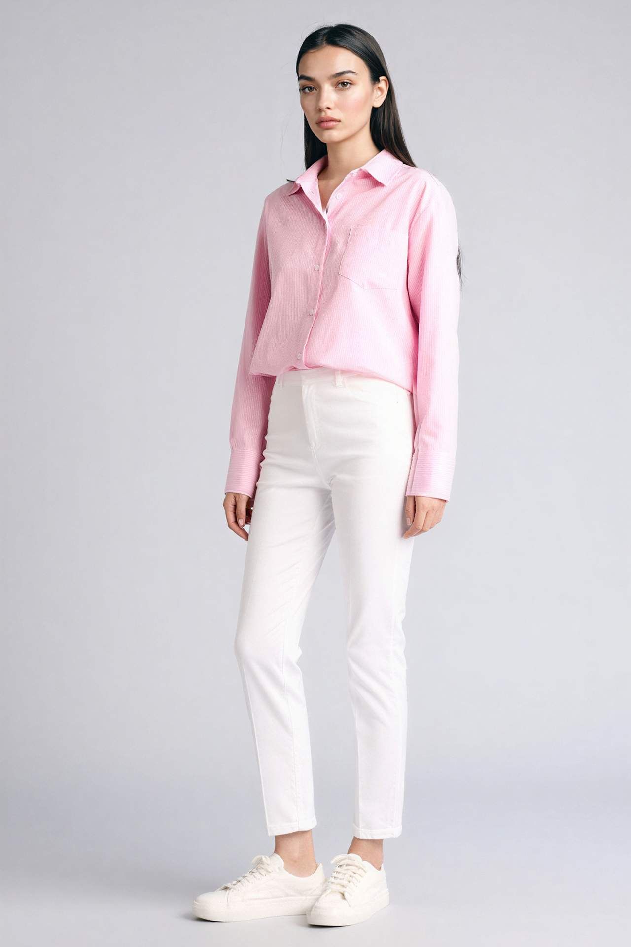 Yetişkin kadınlar için sürdürülebilir beyaz saten pantolon. Normal bel yapısı ve sigaret kalıbı ile tasarlanmıştır. Lastikli kapama detayı ve düz paça ile öne çıkıyor. İlkbahar/Yaz sezonunda kullanım için ideal bir seçenek. Pamuk 69%,Elastan 4%,Poliester 27% Manken Bedeni: Göğüs: 85 Boy: 1,77 Basen: 89 Bel: 62