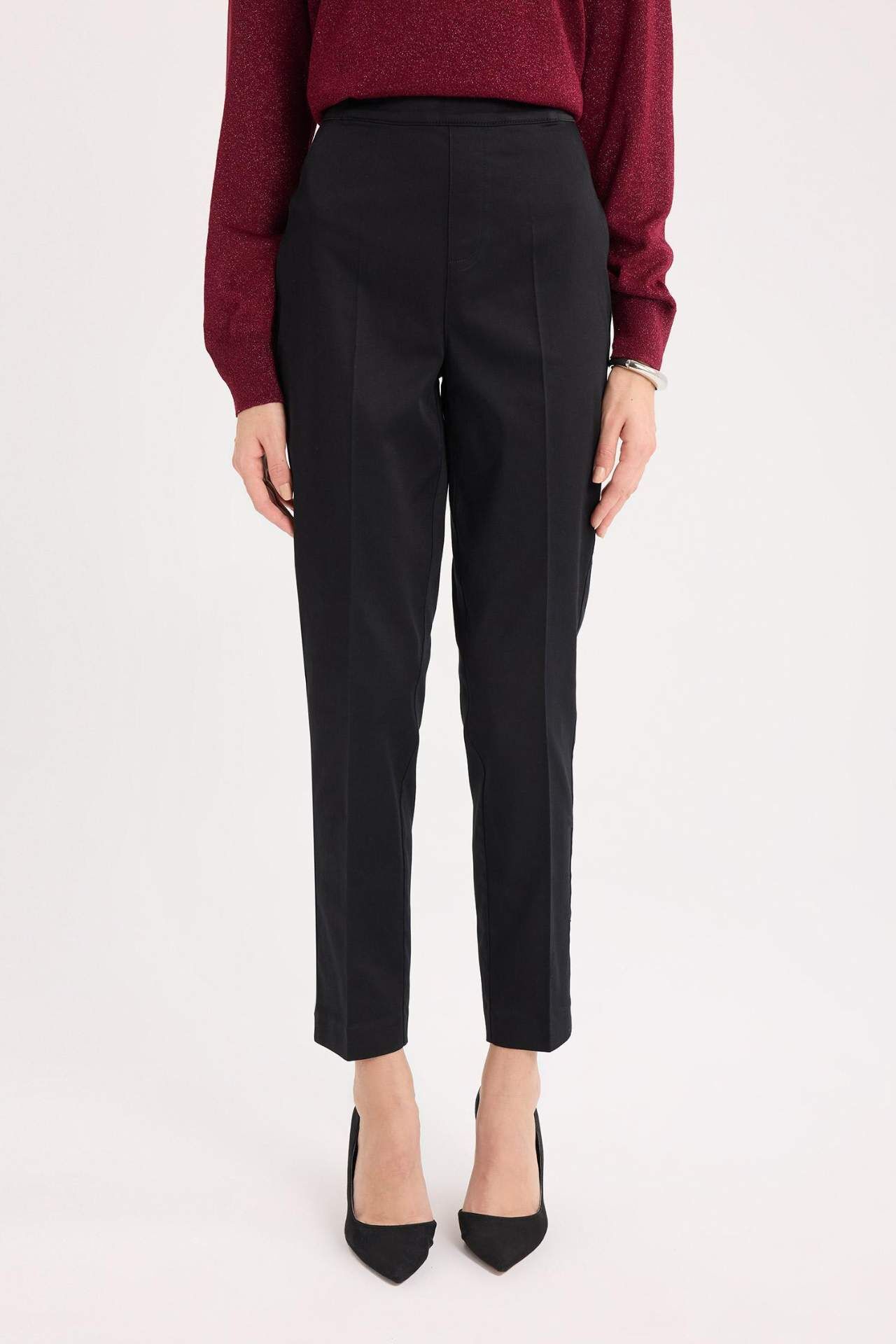DeFacto Sigaret Saten Pantolon Normal Bel Basic Düz Beli Lastikli Düz Paça J8743AZ25SMBK81