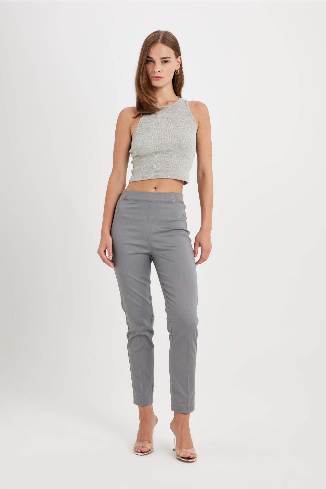 DeFacto Sigaret Saten Pantolon Normal Bel Beli Lastikli Düz Paça Basic Düz J8743AZ24WNGR308