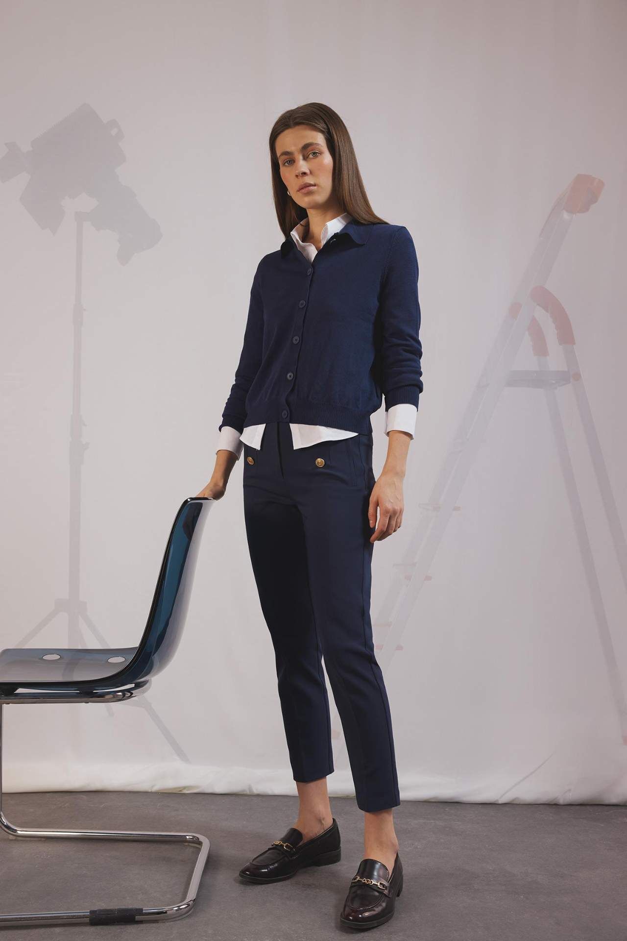 Yetişkin kadınlar için ideal olan yüksek bel düğmeli skinny fit pantolon. Lacivert renk seçeneği ve düz paça detayı ile smart tarzı tamamlar. İlkbahar/Yaz koleksiyonunun temel parçasıdır. Pamuk 53%,Elastan 3%,Poliester 44%,Pamuk 53%,Elastan 3%,Poliester 44%,Pamuk 53%,Elastan 3%,Poliester 44%,Pamuk 53%,Elastan 3%,Poliester 44% Manken Bedeni: Göğüs: 80 Boy: 1,75 Basen: 90 Bel: 60