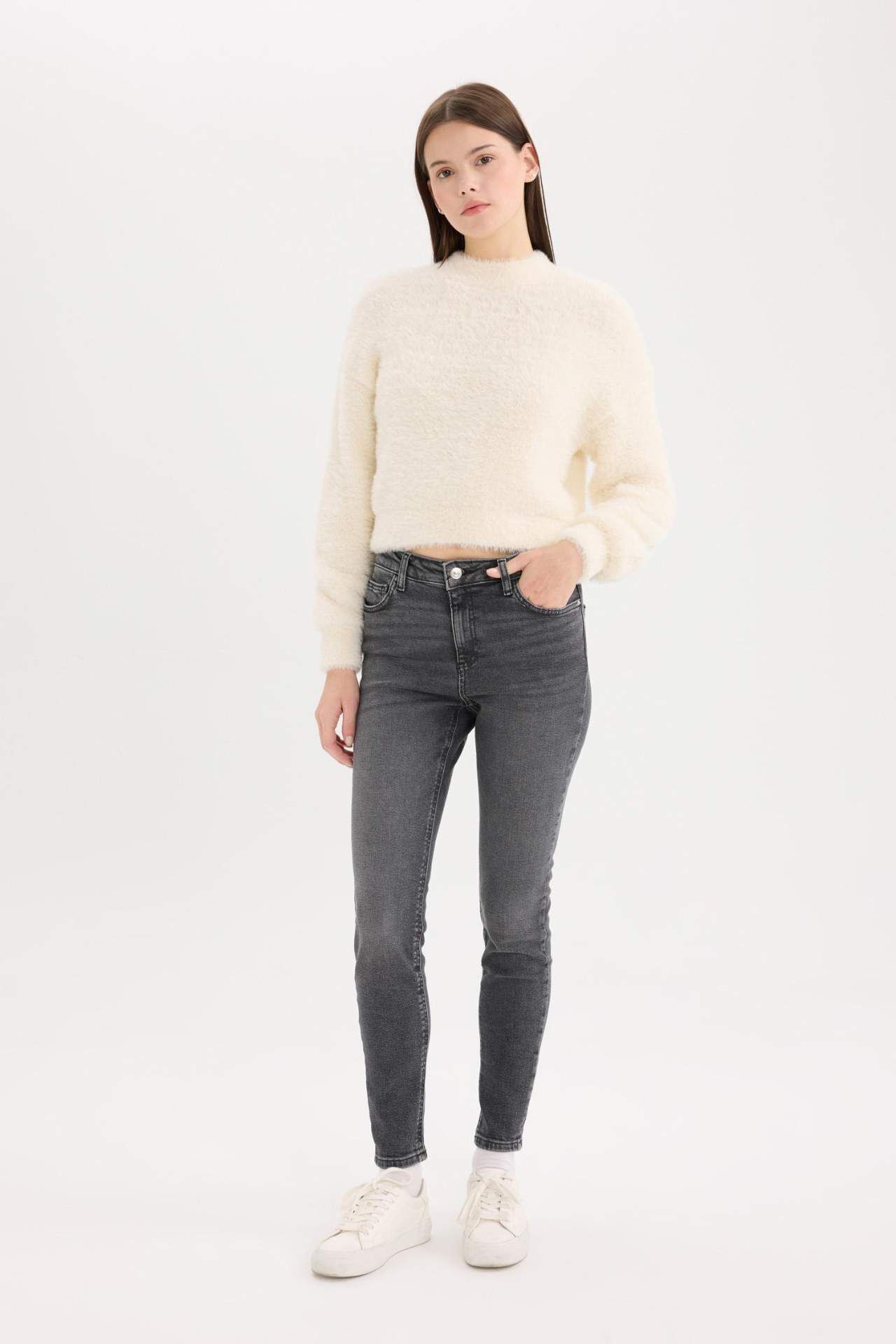 DeFacto Skinny Fit Yüksek Bel Düz Paça Uzun Jean Görünümlü Yıkamalı Pantolon