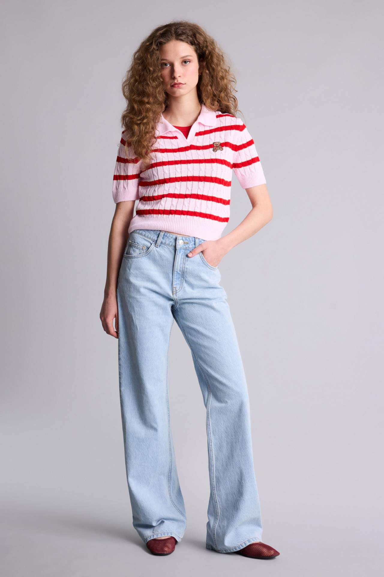 Slim Fit Ayıcıklı Çizgili Kazak, vücuda oturan kesimiyle zarif bir siluet sunarken sevimli ayıcık detayıyla enerjik bir dokunuş kazandırır. Çizgili tasarımı sayesinde modern ve dinamik bir görünüm sağlar. Günlük kombinlerinize hem sıcaklık hem stil katar. Akrilik 100% Manken Bedeni: Göğüs: 78 Boy: 1,74 Basen: 89 Bel: 60