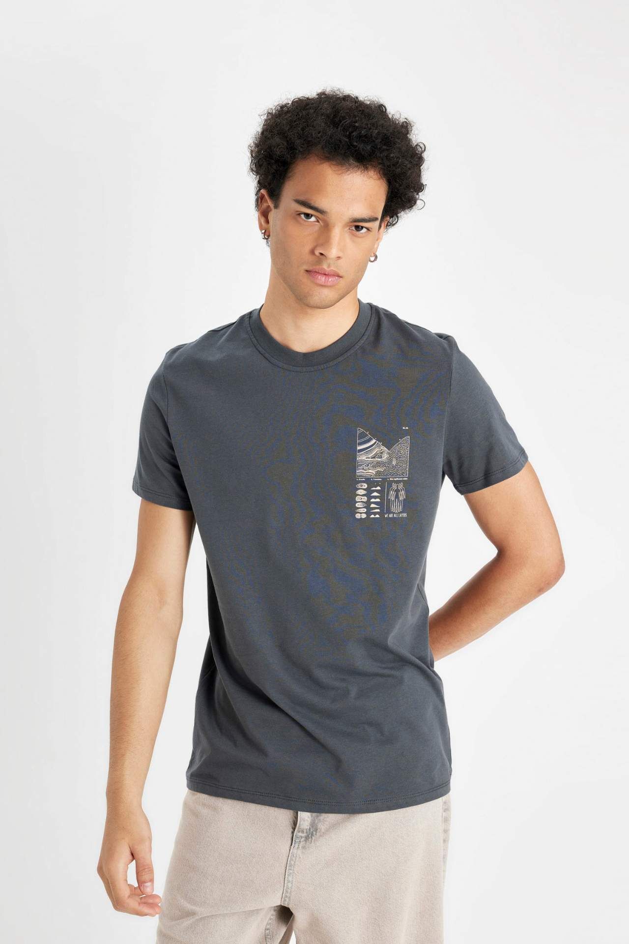 Şıklığı ve rahatlığı bir arada sunan Slim Fit Bisiklet Yaka Baskılı Kısa Kollu Tişört, gardırobunuzun vazgeçilmezi olmaya aday. Kaliteli kumaşı ve özel baskısı ile tarzınızı yansıtın. Pamuk 100%,Pamuk 100% Manken Bedeni: Göğüs: 93 Boy: 1,85 Basen: 92 Bel: 72