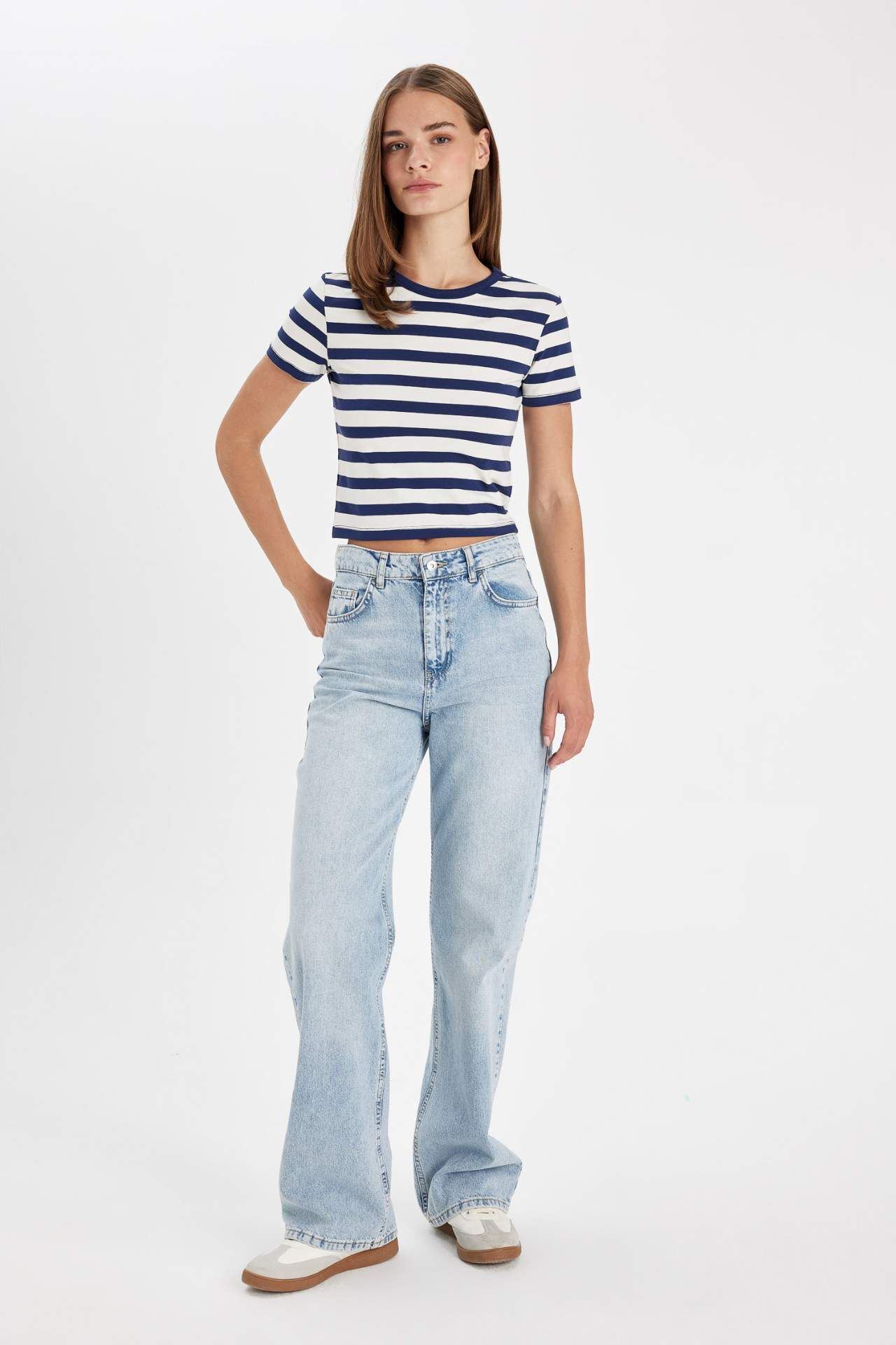 DeFactoFit Slim Fit Bisiklet Yaka Çizgili Penye Kısa Kollu Tişört