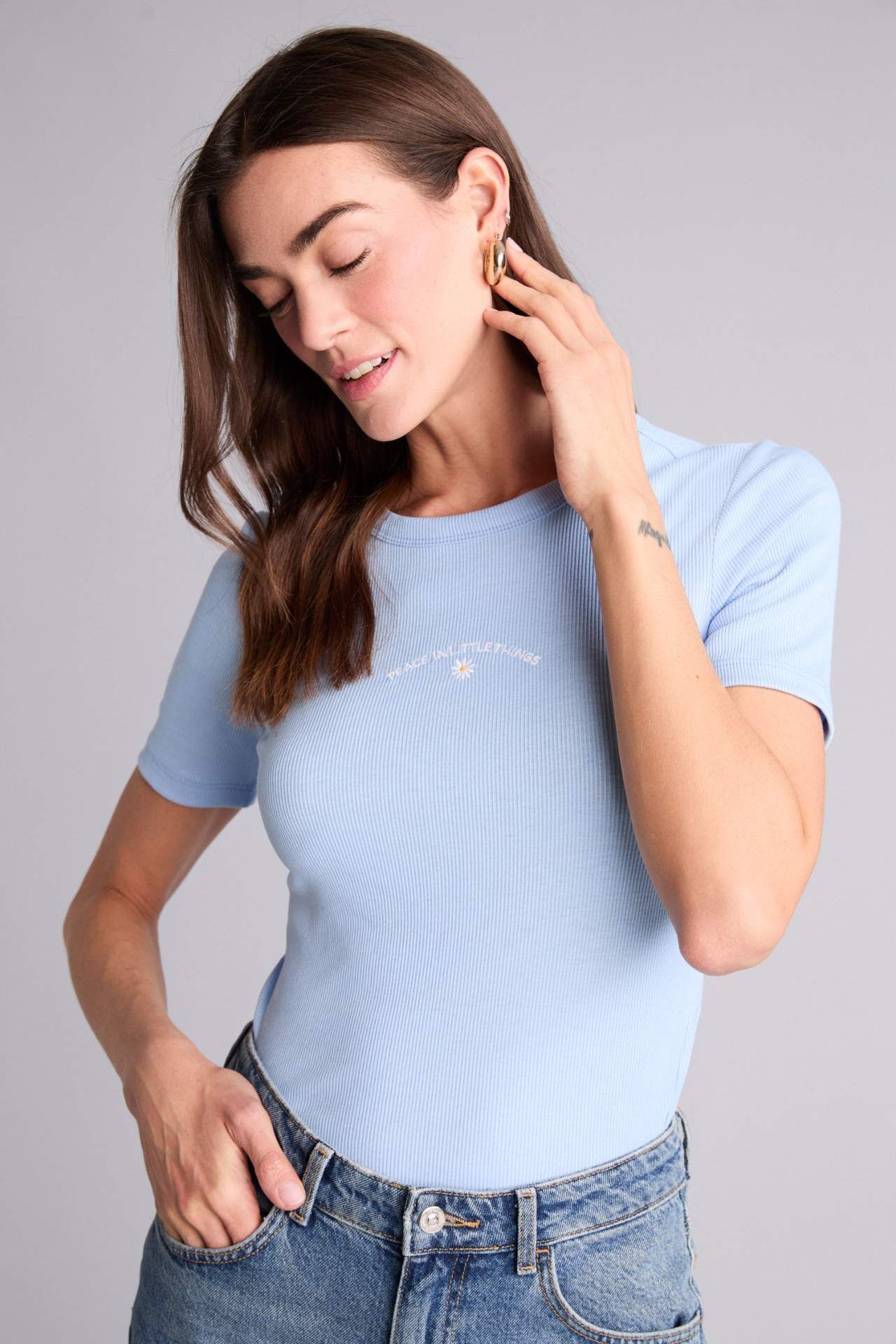 Şık ve şık bir görünüm için bu mavi çiçekli kısa kollu tişörtü tercih edin. Fitilli kaşkorse kumaştan yapılan bu slim fit tişört, nakış baskı detaylarıyla dikkat çekiyor. İlkbahar/Yaz mevsimi için ideal olan bu günlük parça, yetişkin kadınlar için tasarlanmıştır. Bisiklet yaka detayı da şıklığınızı tamamlar. Elastan 3%,Viskoz 32%,Poliester 65% Manken Bedeni: Göğüs: 89 Boy: 1,78 Basen: 92 Bel: 63