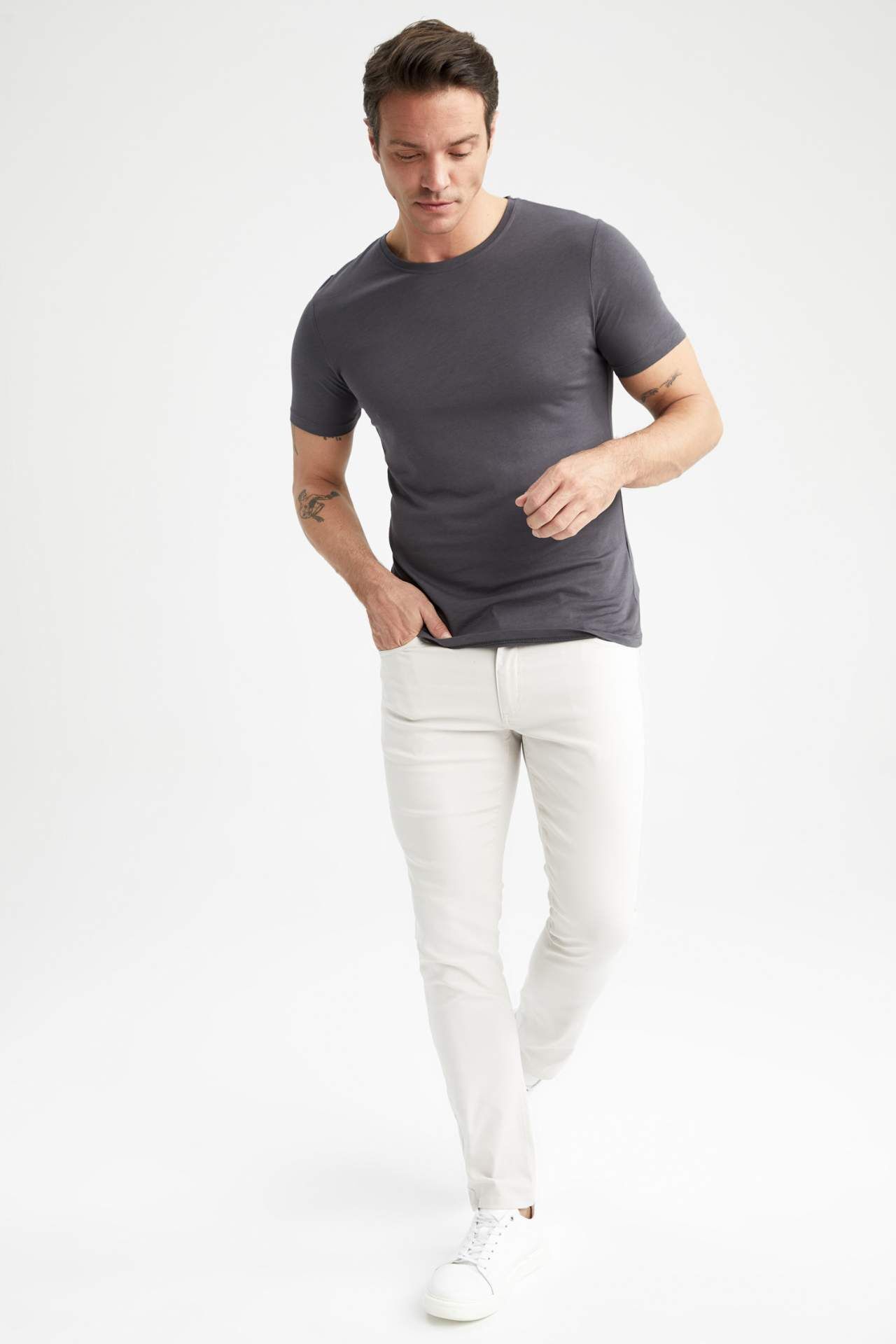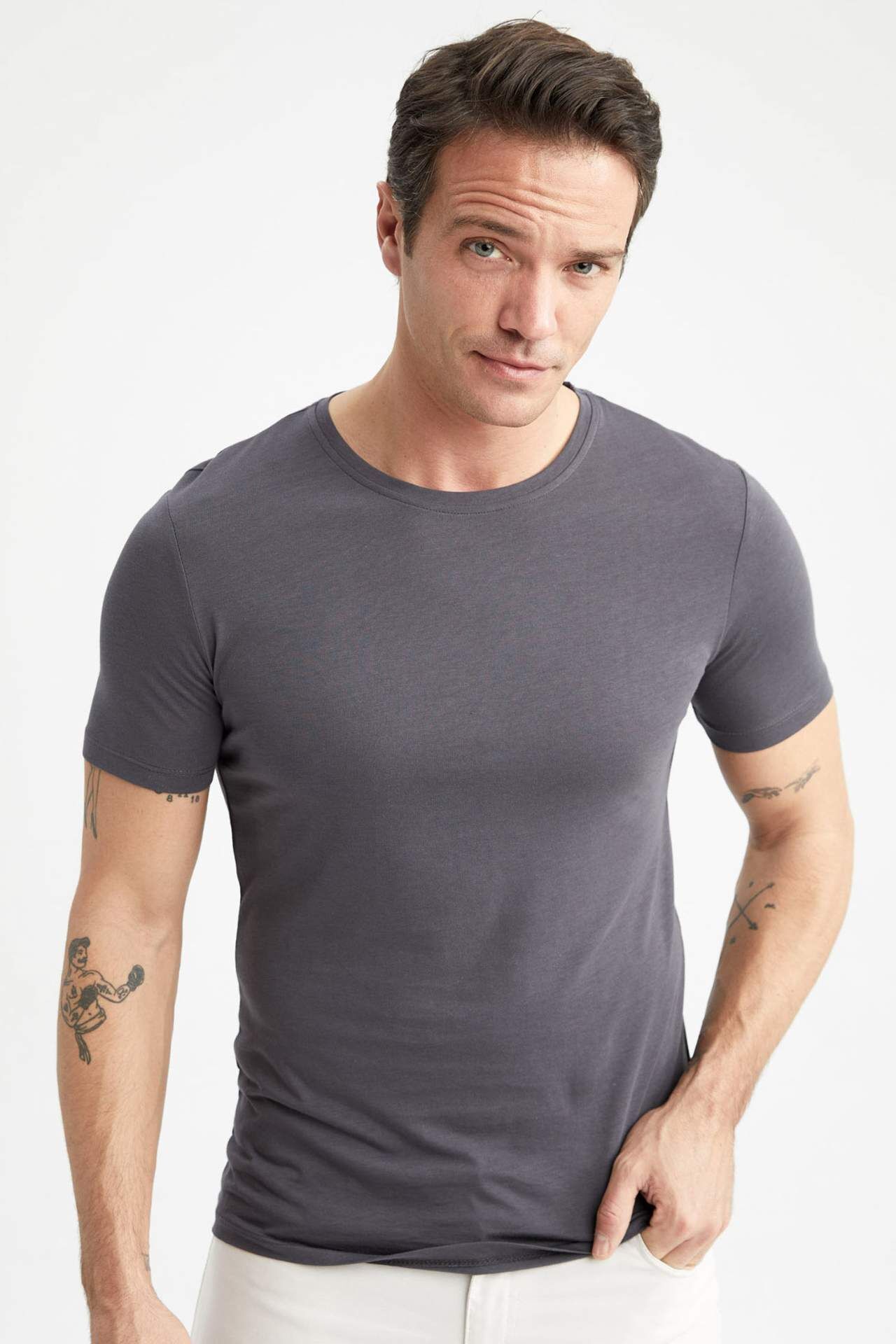 DeFacto Slim Fit Bisiklet Yaka Premium Kalite Basic Tişört Antrasit
