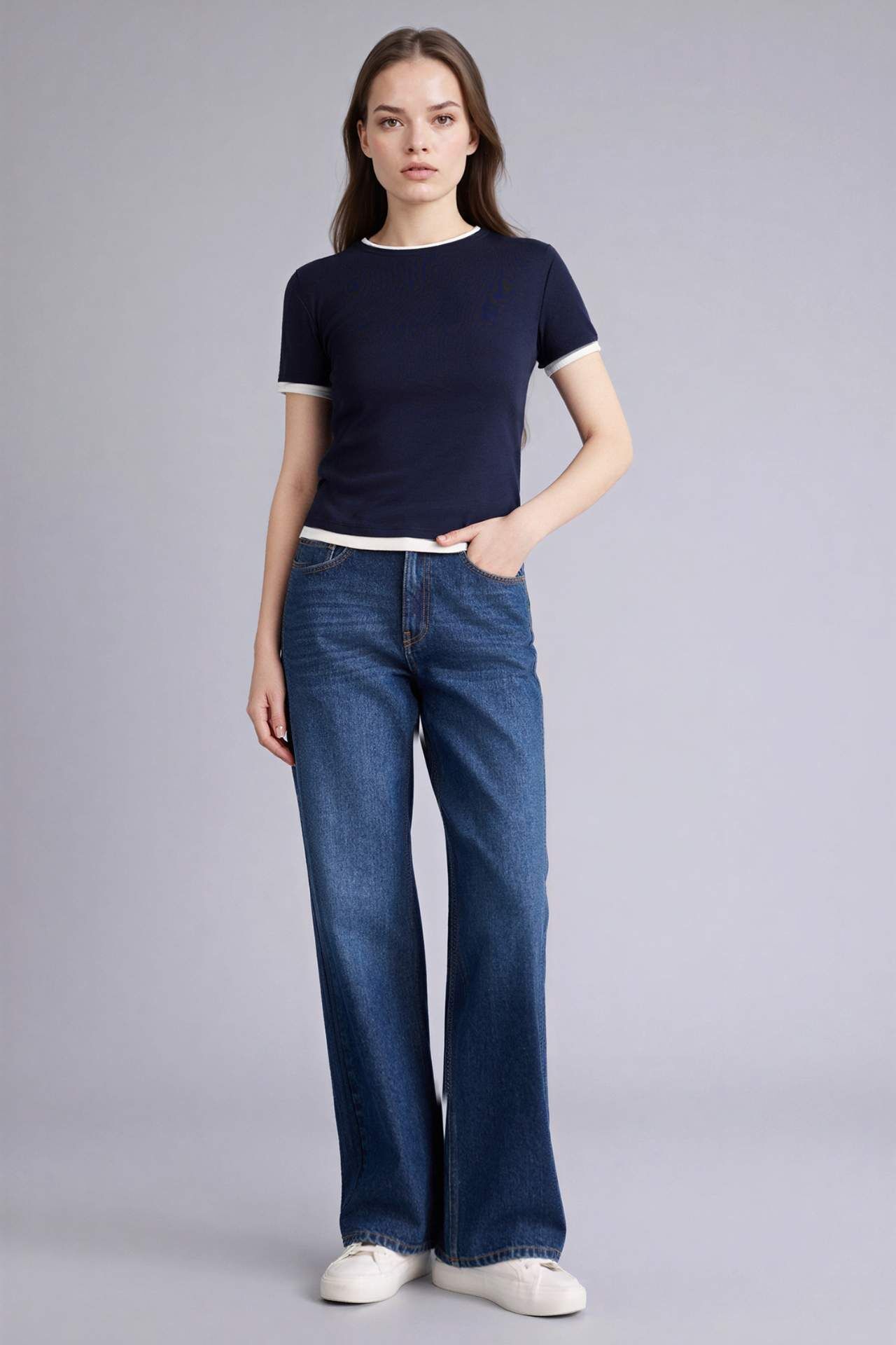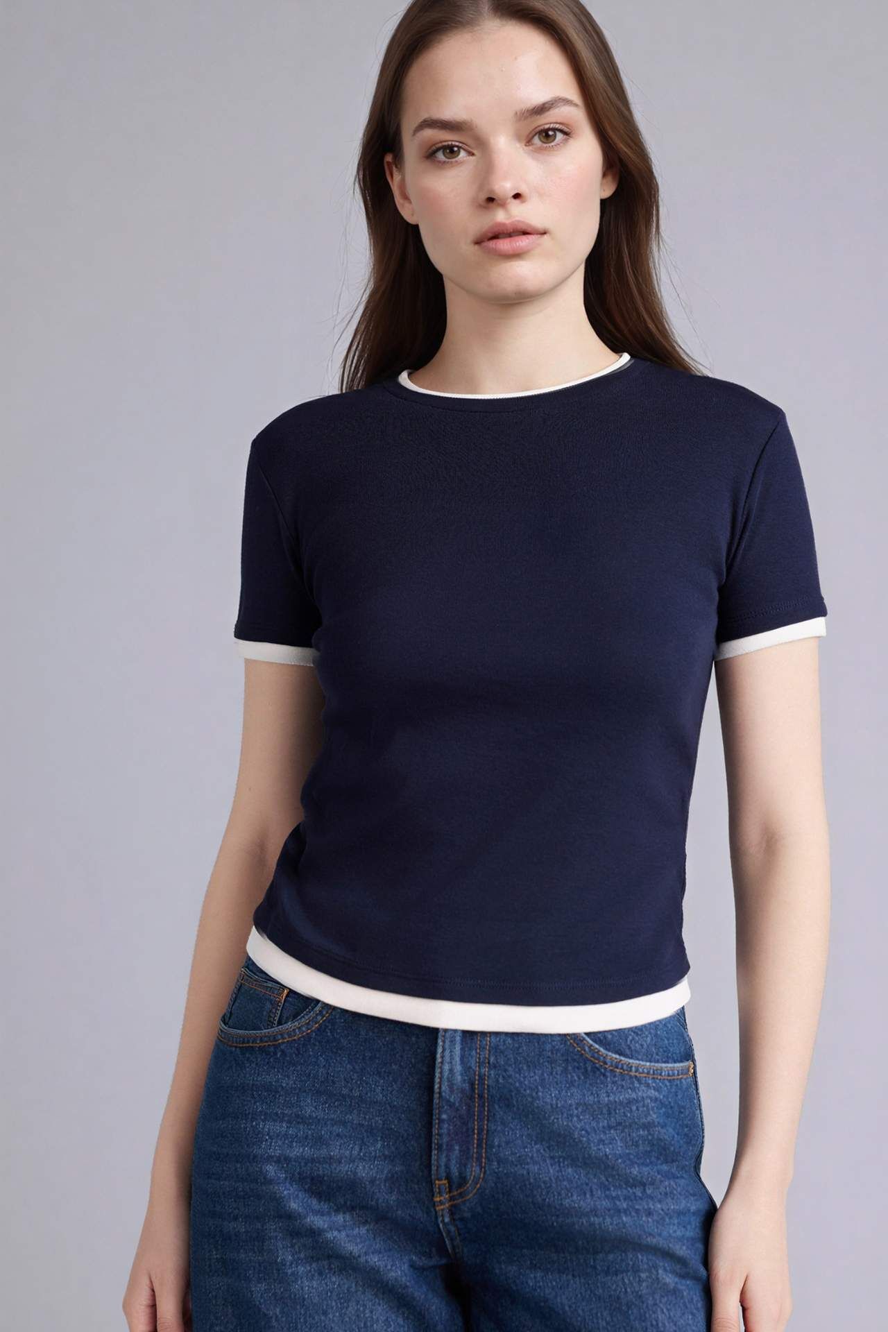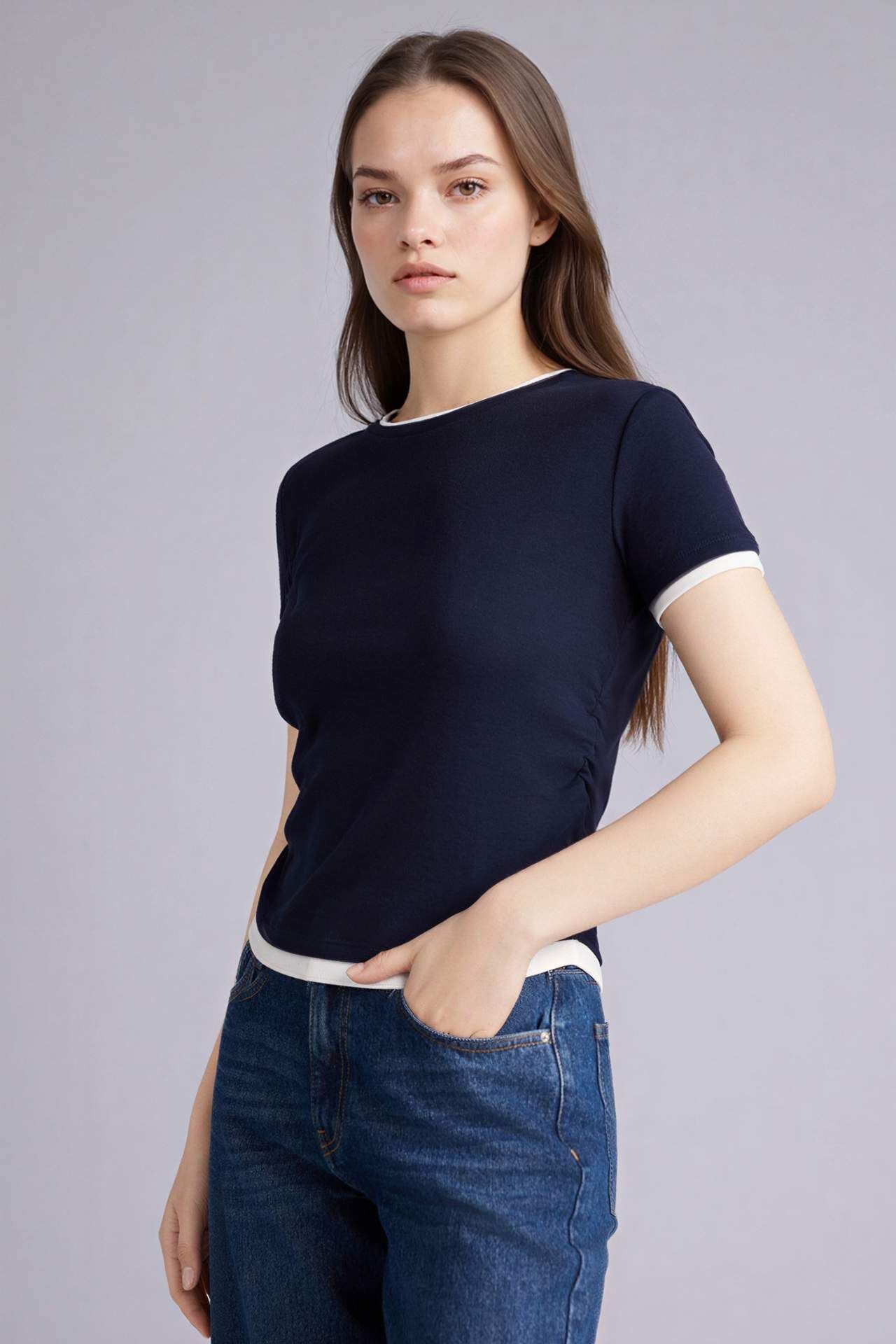 Slım Fıt Bisiklet Yaka Ribana Kısa Kollu Tişört