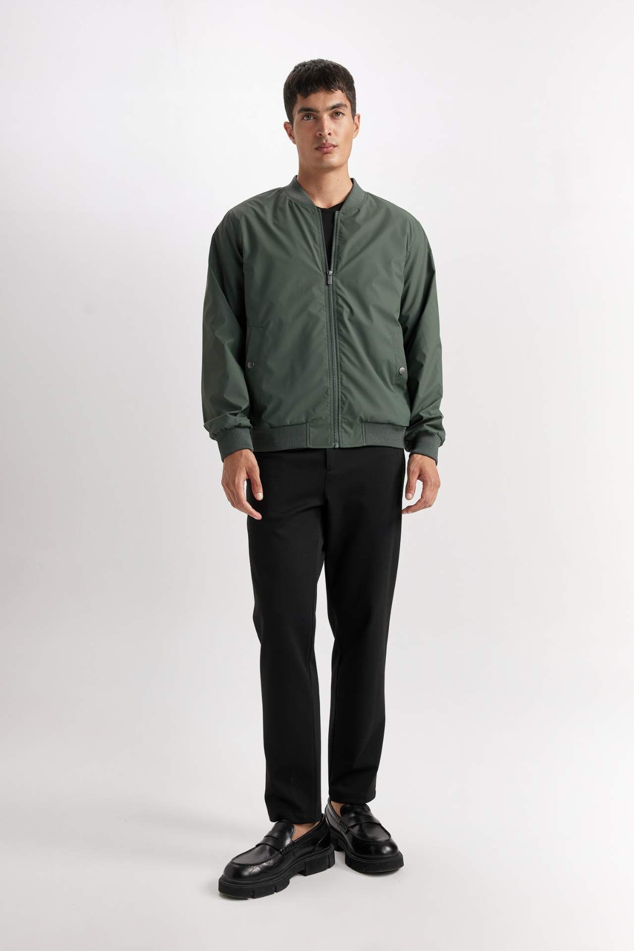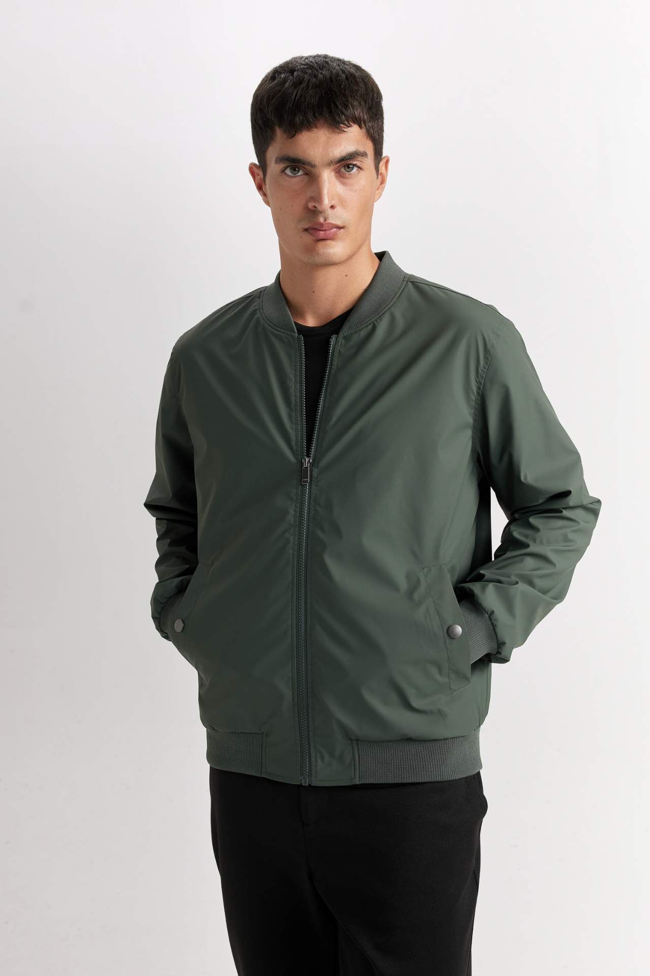DeFacto Slim Fit Bomber Mont Ceket Kolej Yaka Dar Kesim Fermuarlı Çift Cepli Mevsimlik Hafif
