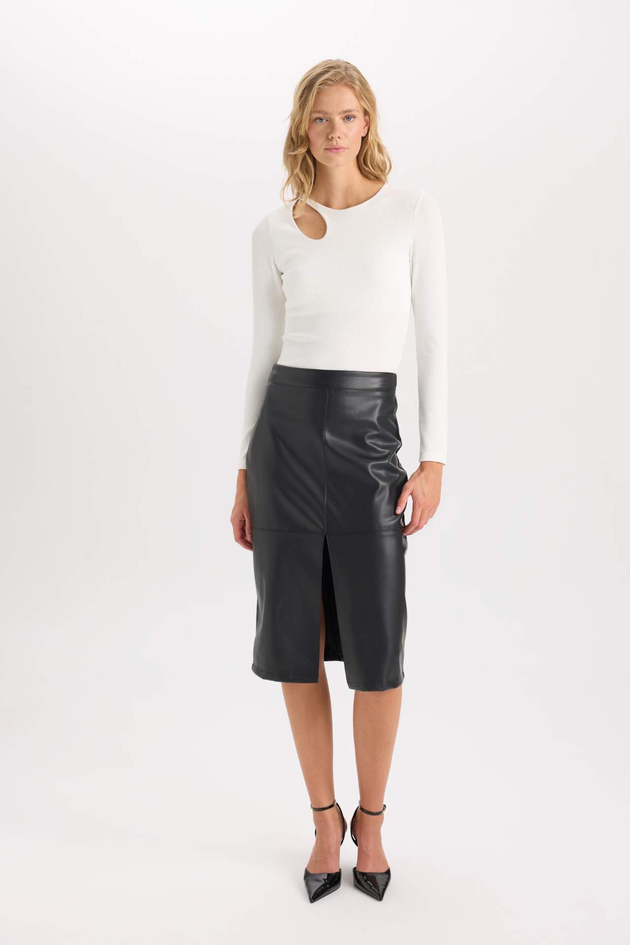 DeFacto Slim Fit Dar Kalıp Bisiklet Yaka Basic Düz Simli Kumaş Uzun Kollu Tişört D5114AX24AUER105