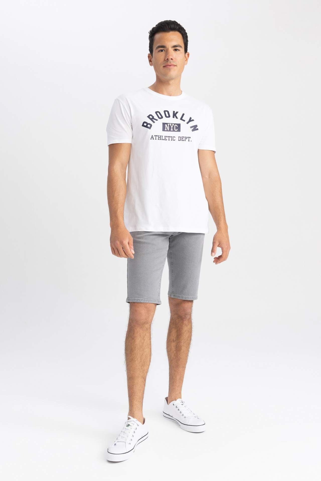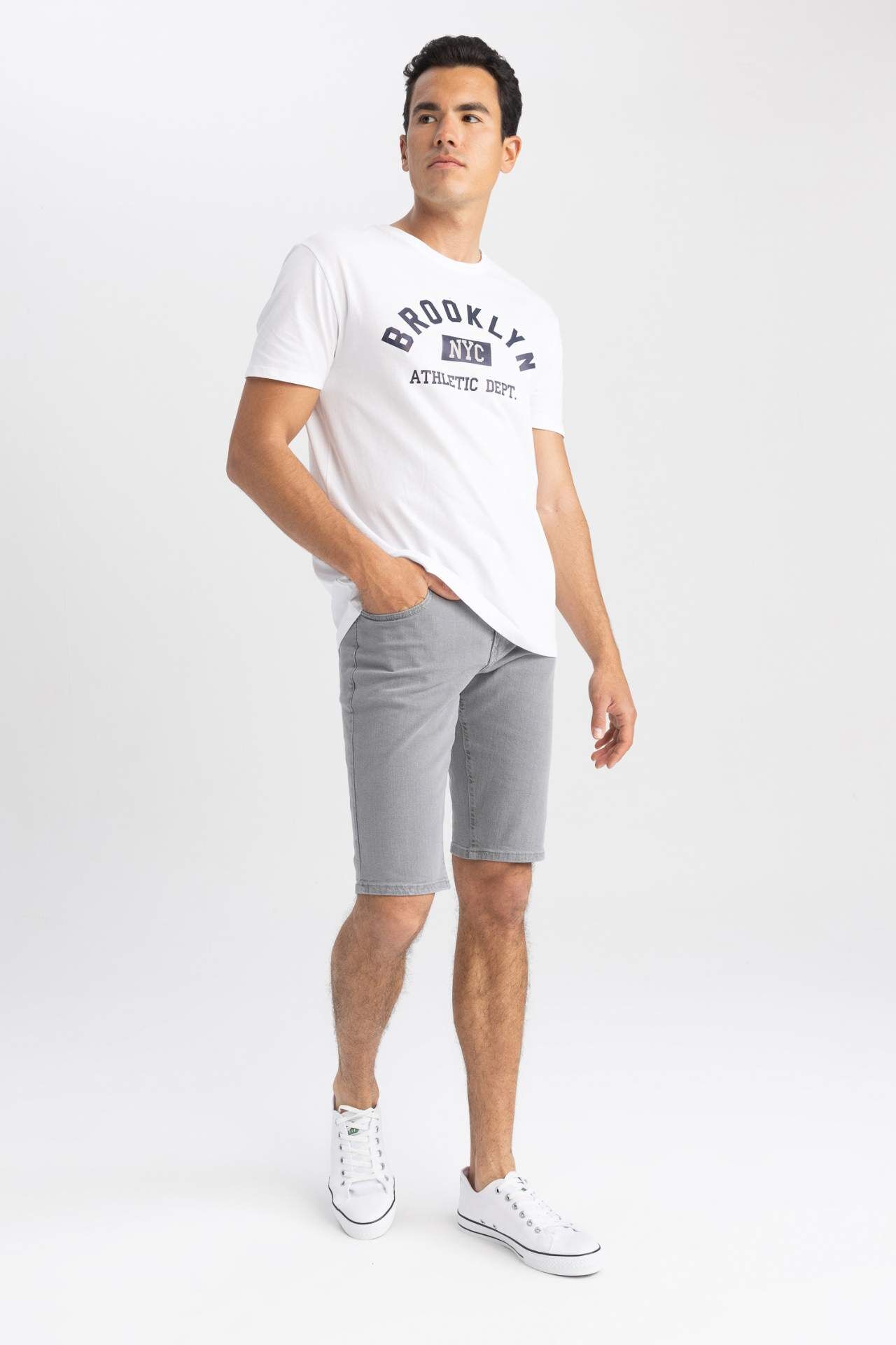DeFacto Slim Fit Dar Kalıp Normal Bel Dar Paça Jean Bermuda Şort