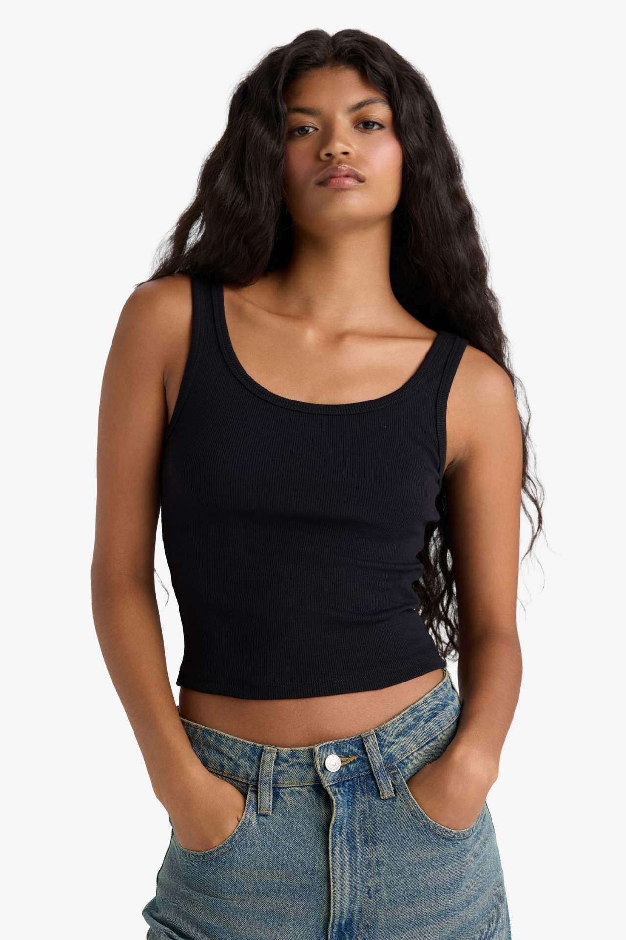 DeFacto Slim Fit Dar Kesim Basic Düz Bisiklet Yaka Fitilli Kaşkorse Casual Atlet E5540AX25SMBK81