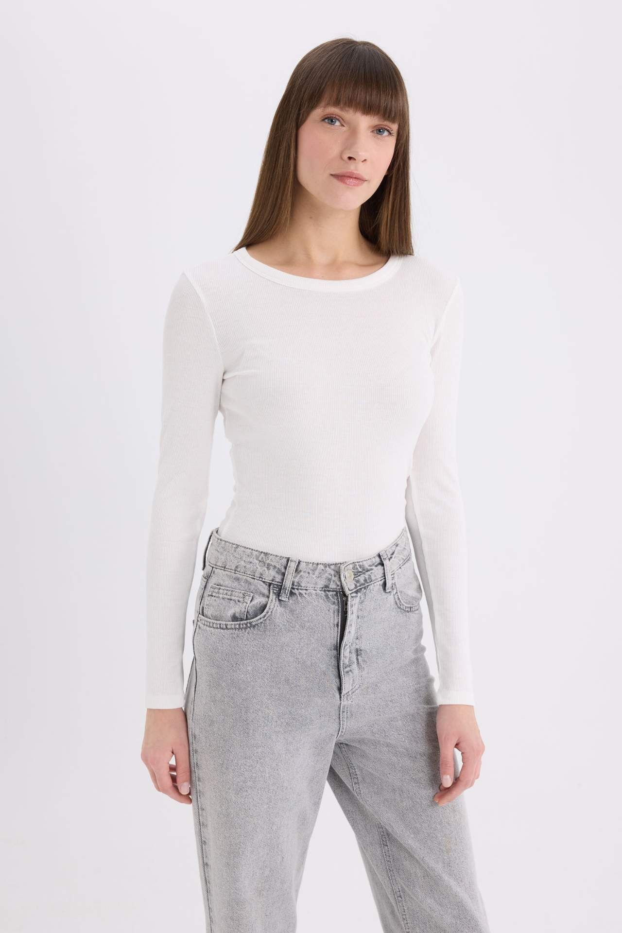 DeFacto Slim Fit Dar Kesim Basic Düz Casual Fitilli Kaşkorse Uzun Kollu Tişört E5767AX25SPER105