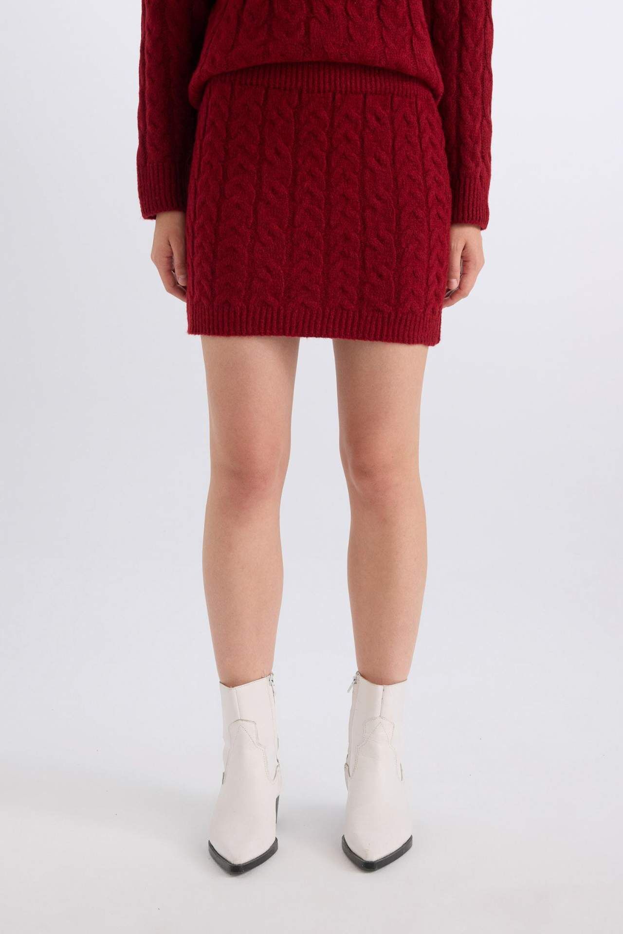 DeFacto Slim Fit Dar Kesim Basic Düz Mini Triko Etek