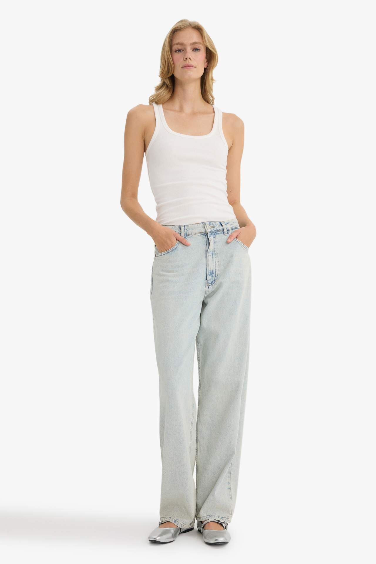 DeFacto Slim Fit Dar Kesim Basic Düz Yuvarlak Yaka Fitilli Kaşkorse Atlet E5539AX25SMER105