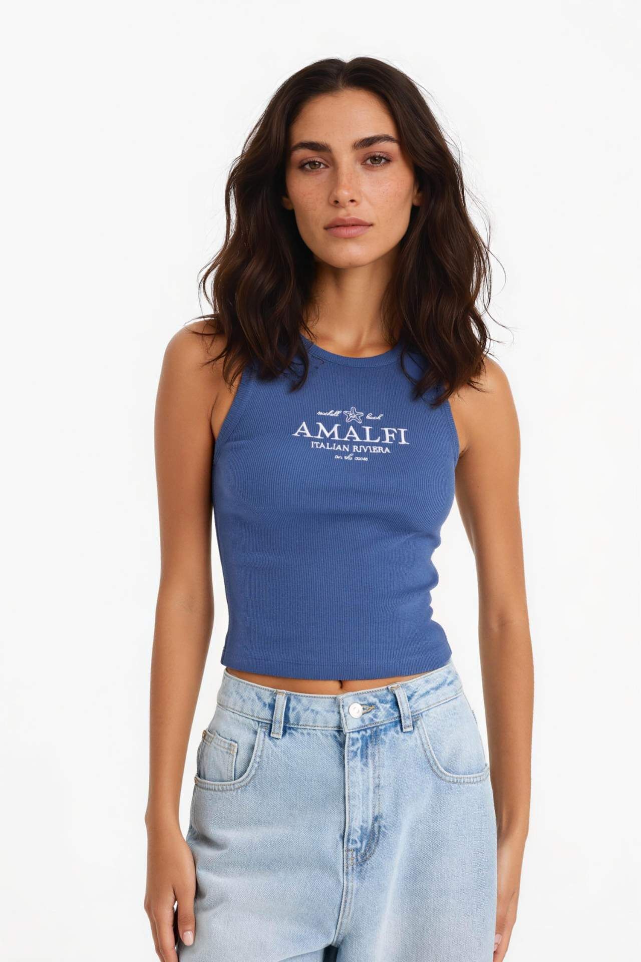 DeFacto Slim Fit Dar Kesim Baskılı Halter Yaka Fitilli Kaşkorse Atlet F6239AX25HSIN231