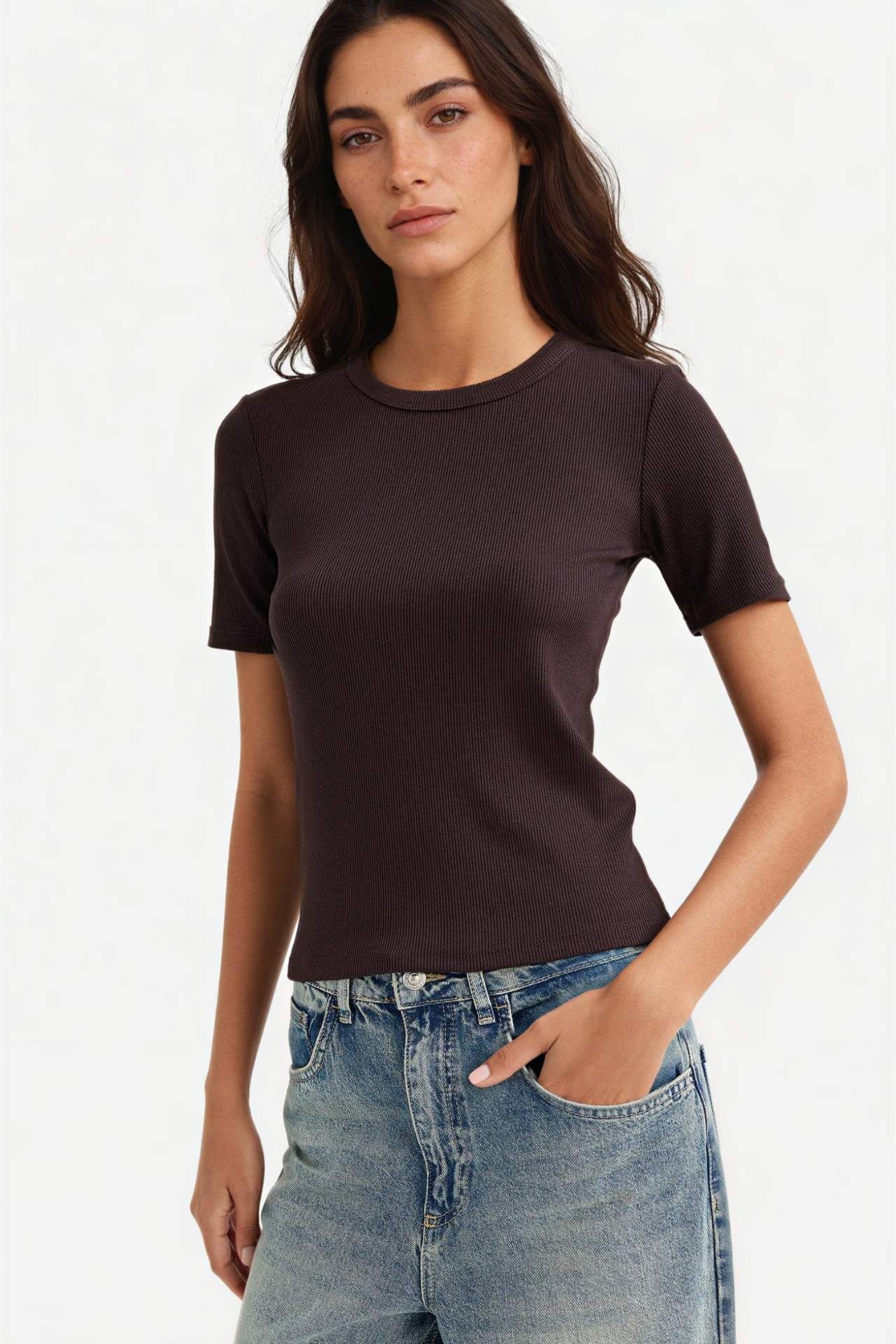 Yetişkin kadınlar için sonbaharın vazgeçilmezi! Kahverengi bisiklet yaka kısa kollu tişört, slim fit dar kesimi ile öne çıkıyor. Basic düz deseni ve fitilli kaşkorse kumaşıyla günlük şıklığınızı tamamlar. Şimdi alışverişe başlayın! Elastan 2%,Viskoz 35%,Poliester 63%,Elastan 2%,Viskoz 35%,Poliester 63%,Elastan 2%,Viskoz 35%,Poliester 63%,Elastan 2%,Viskoz 35%,Poliester 63%,Elastan 2%,Viskoz 35%,Poliester 63%,Elastan 2%,Viskoz 35%,Poliester 63%