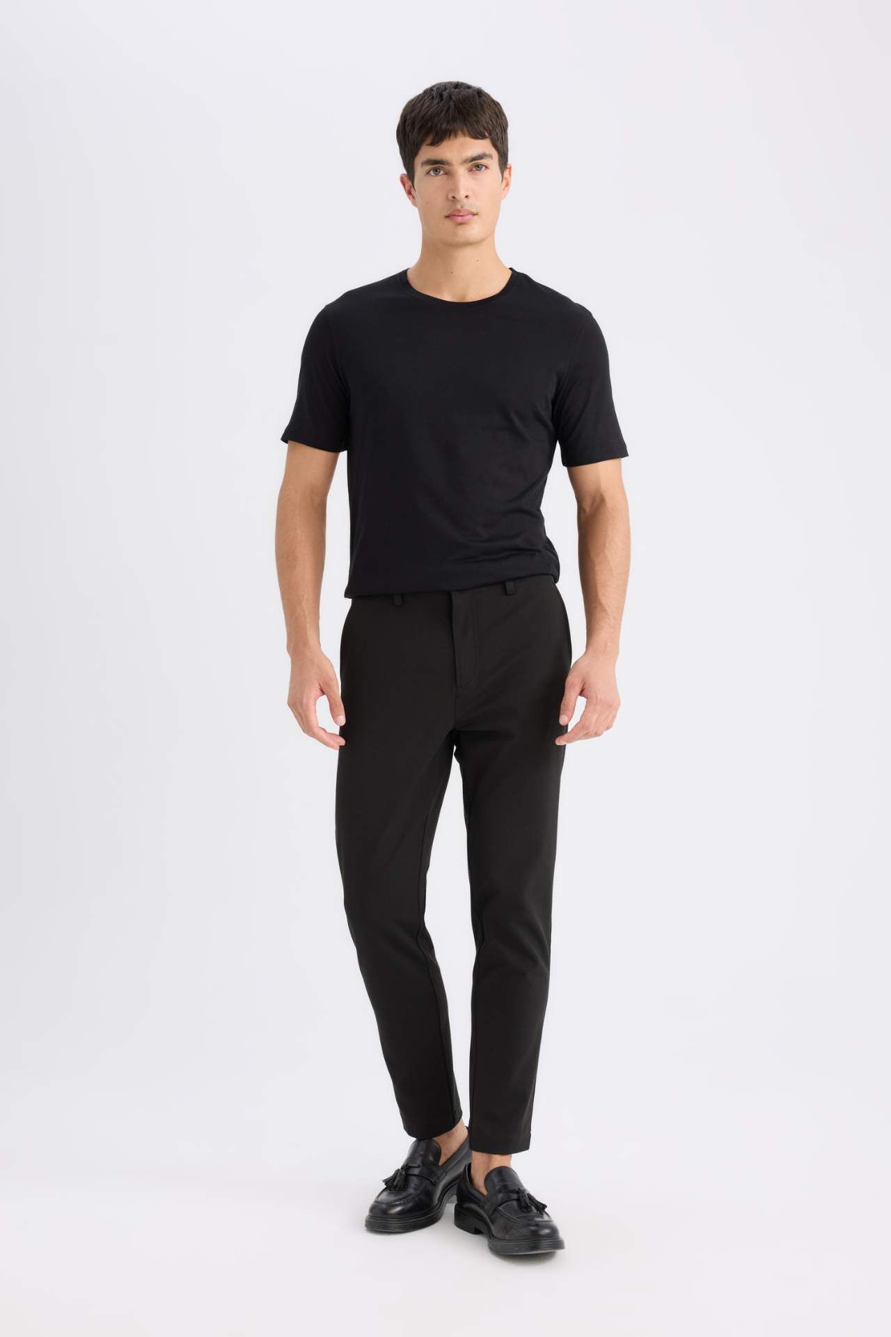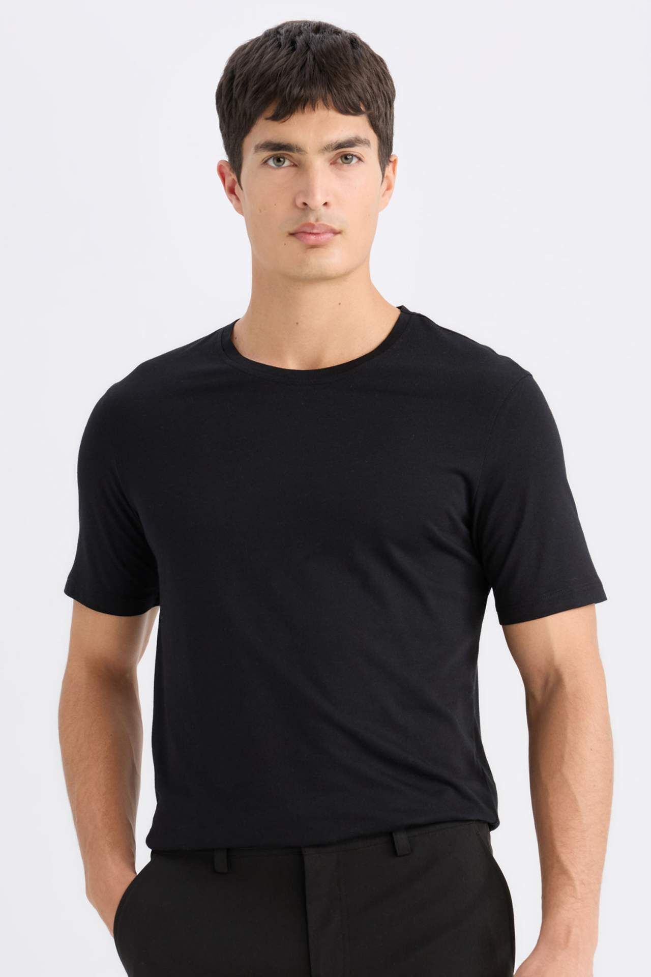 DeFacto Slim Fit Dar Kesim Bisiklet Yaka Basic Düz Kısa Kollu Tişört M6606AZ24AUBK81