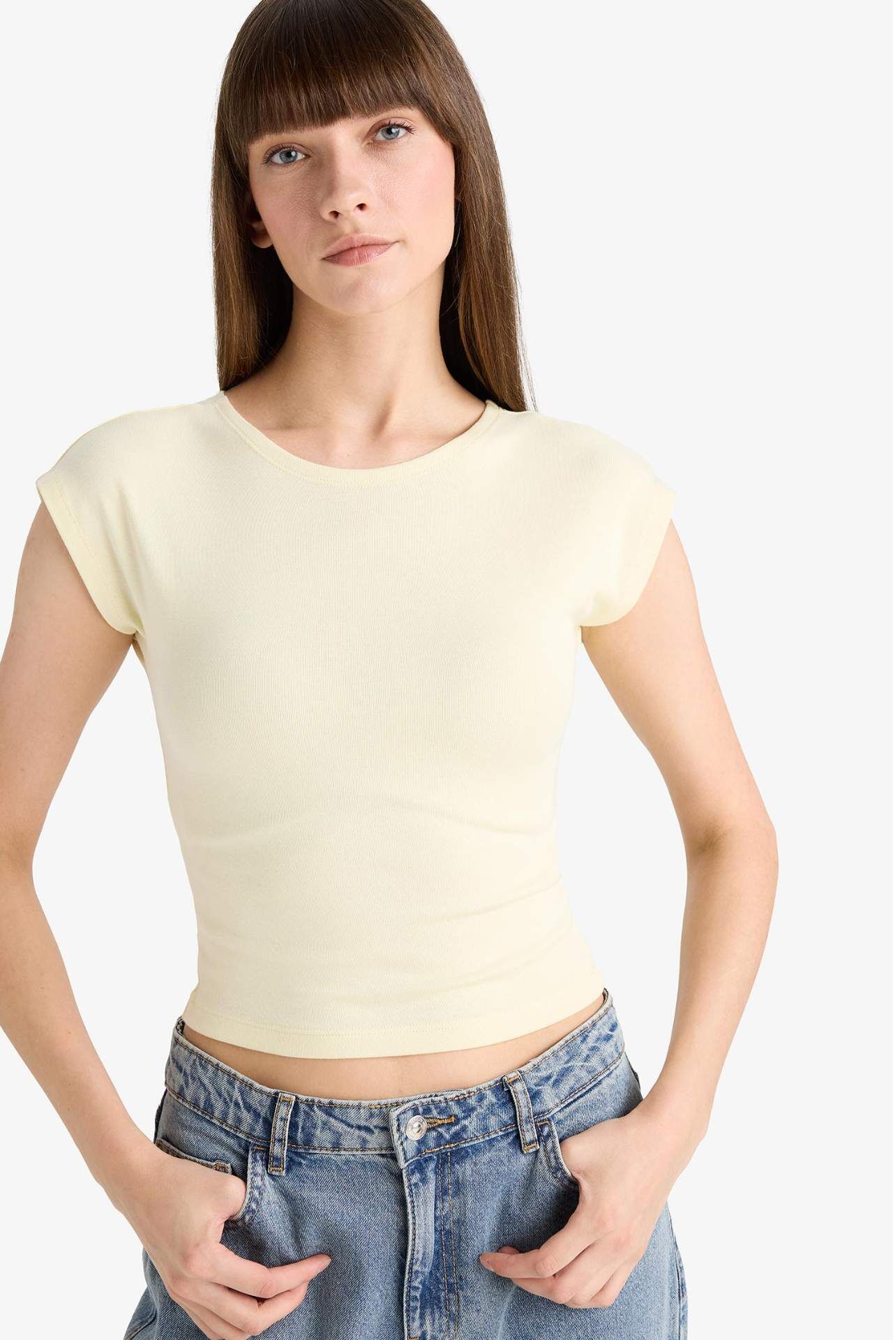 Slim Fit Dar Kesim Bisiklet Yaka Basic Düz Modal Kısa Kollu Tişört