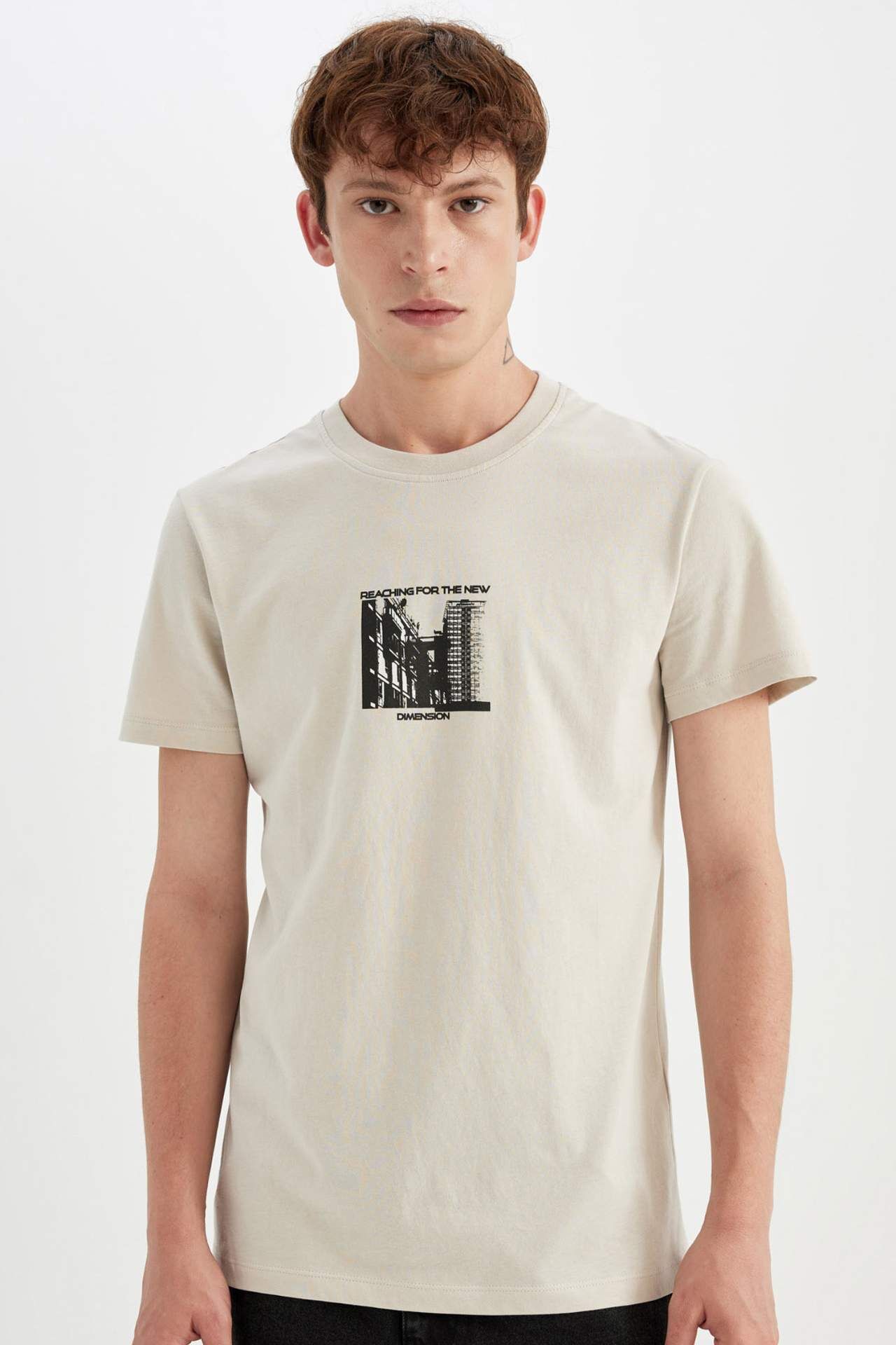DeFacto Slim Fit Dar Kesim Bisiklet Yaka Baskılı Pamuklu Kısa Kollu Tişört