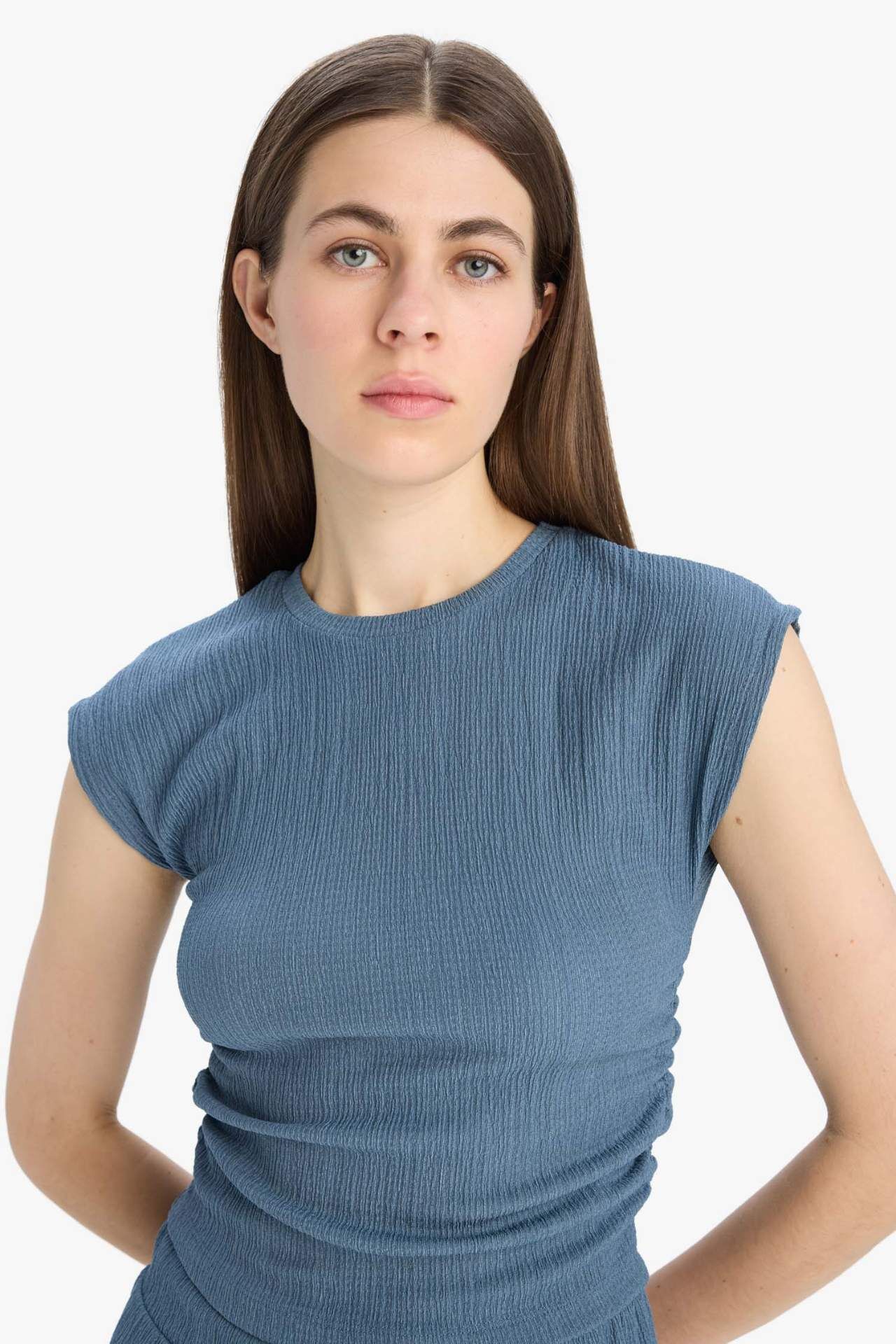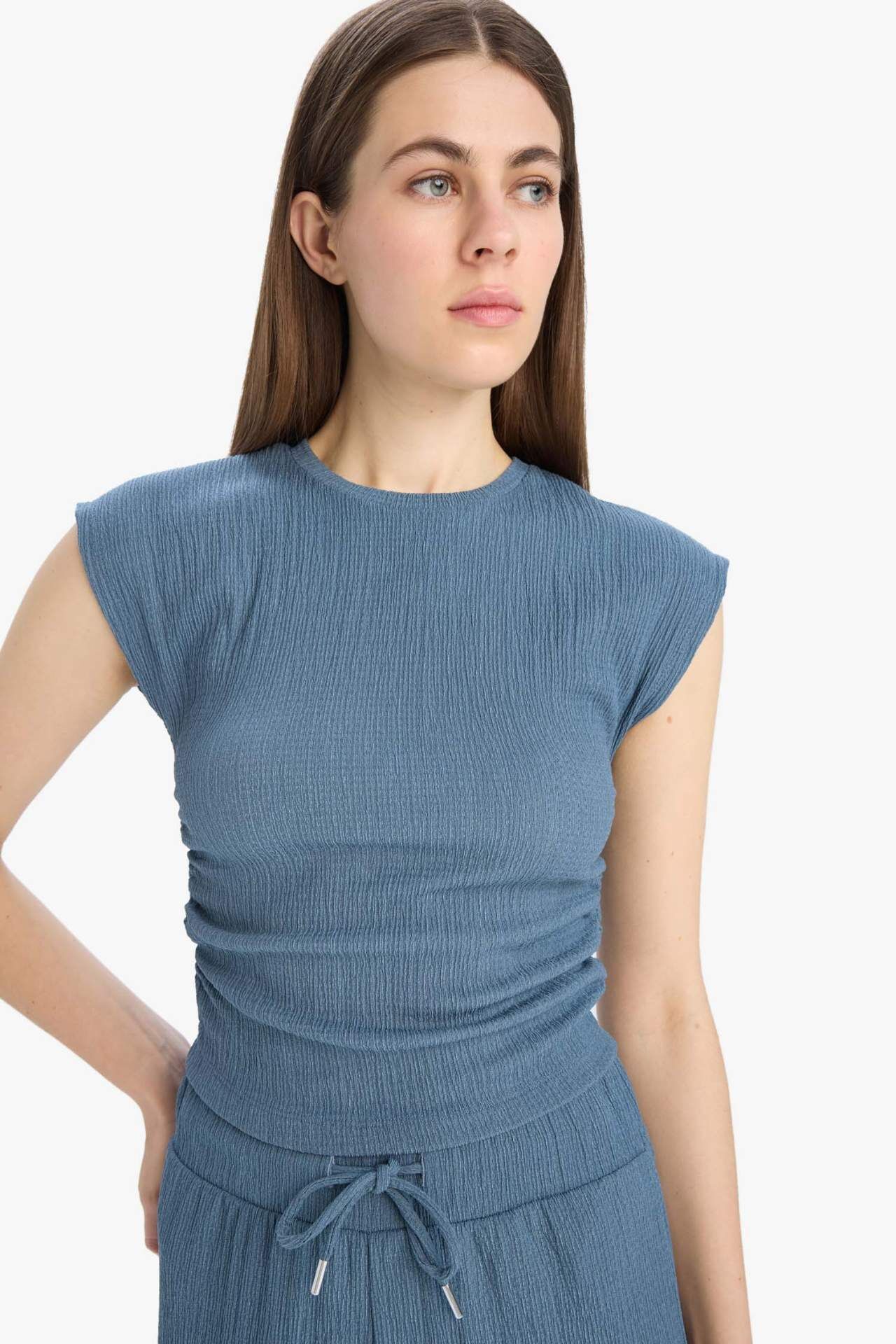 DeFacto Slim Fit Dar Kesim Bisiklet Yaka Bürümcük Kısa Kollu Tişört E3398AX25SPIN13