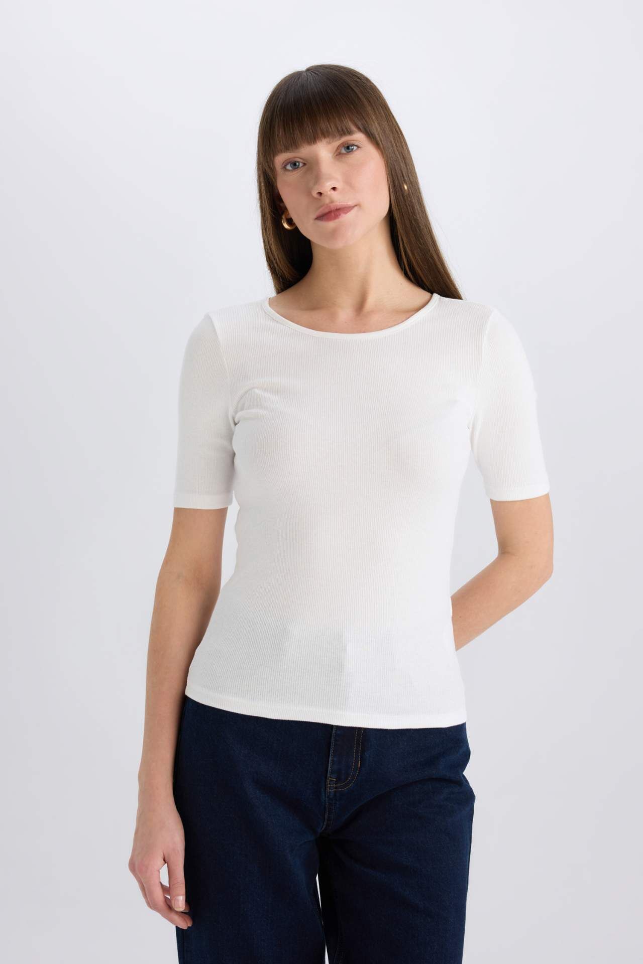 DeFacto Slim Fit Dar Kesim Bisiklet Yaka Casual Fitilli Kaşkorse Kısa Kollu Tişört E5776AX25SPER105