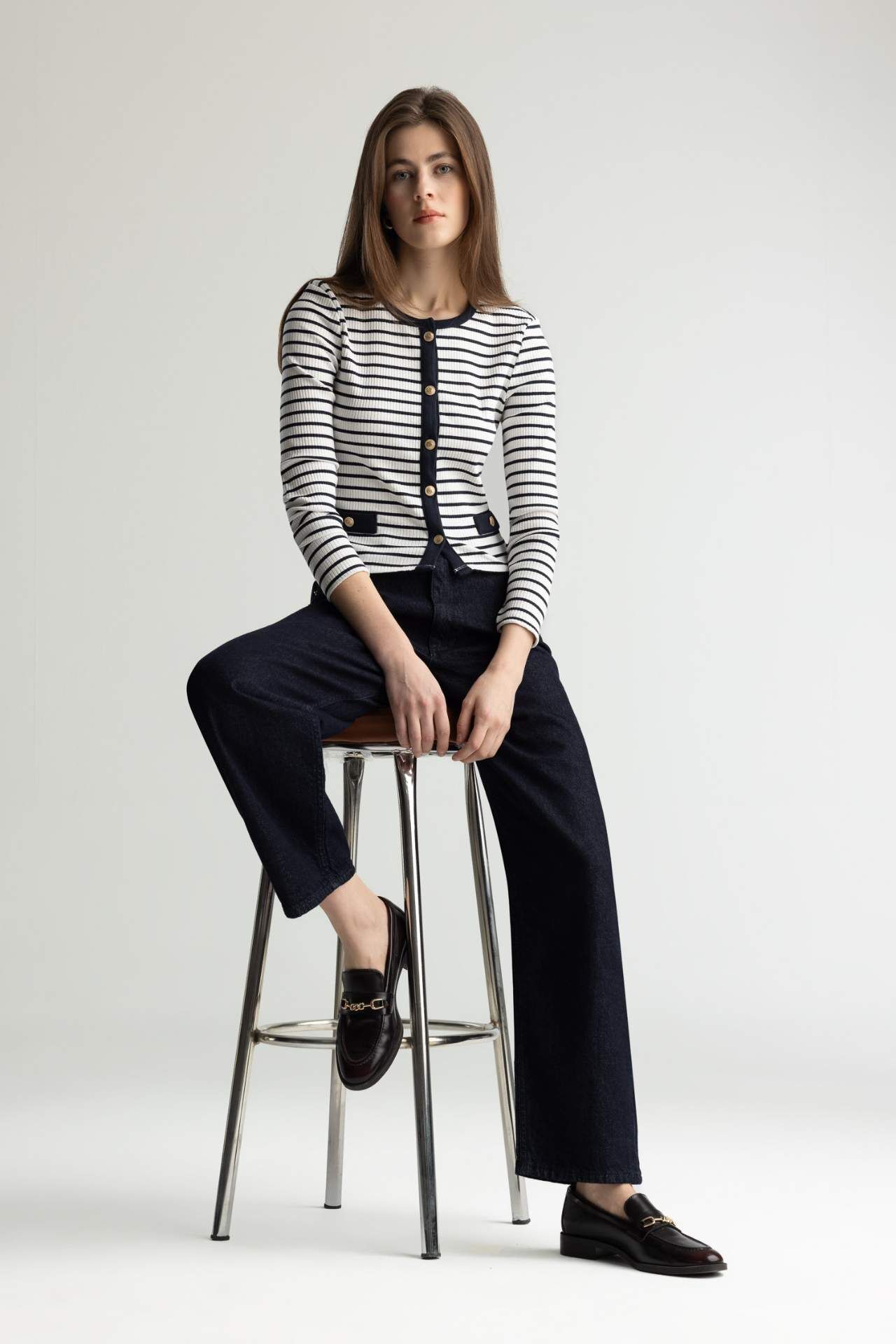 DeFacto Slim Fit Dar Kesim Bisiklet Yaka Çizgili Uzun Kollu Hırka