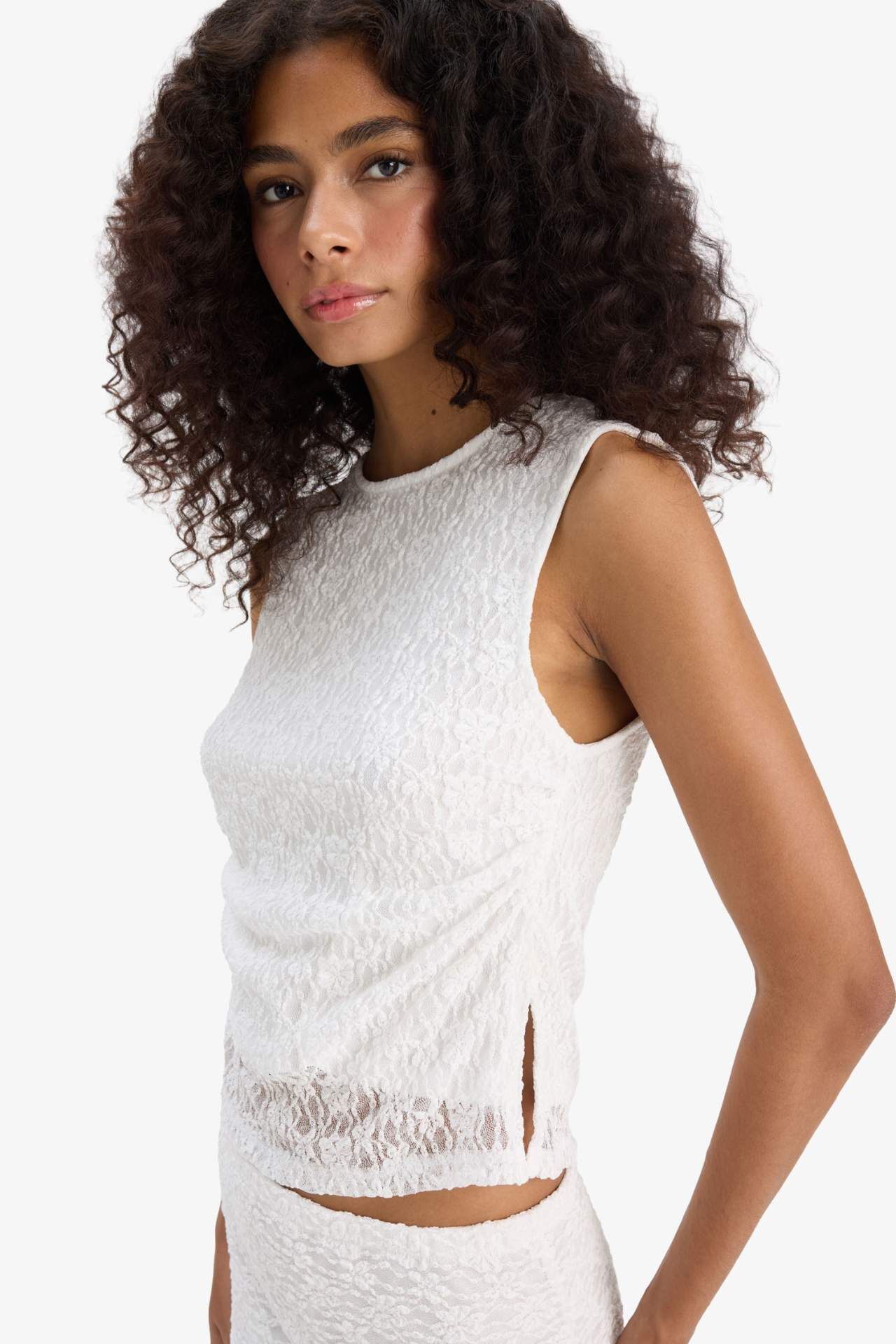 DeFacto Slim Fit Dar Kesim Bisiklet Yaka Dantel Atlet