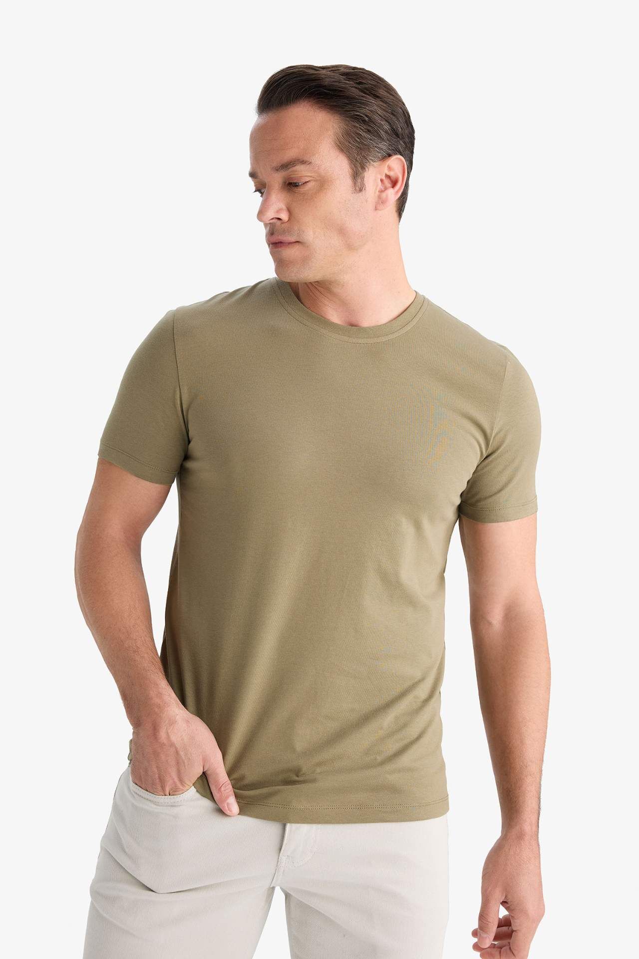DeFacto Slim Fit Dar Kesim Bisiklet Yaka Esnek Kumaş Kısa Kollu Tişört