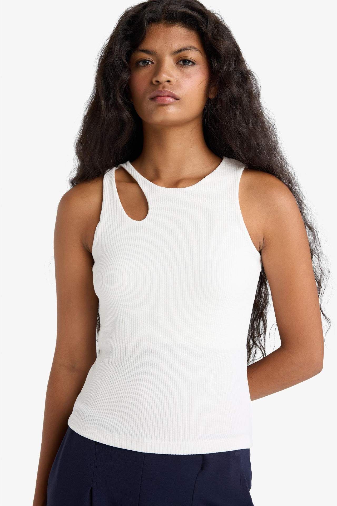 Slim Fit Dar Kesim Bisiklet Yaka Fitilli Kaşkorse Atlet A3422AX25AUER105