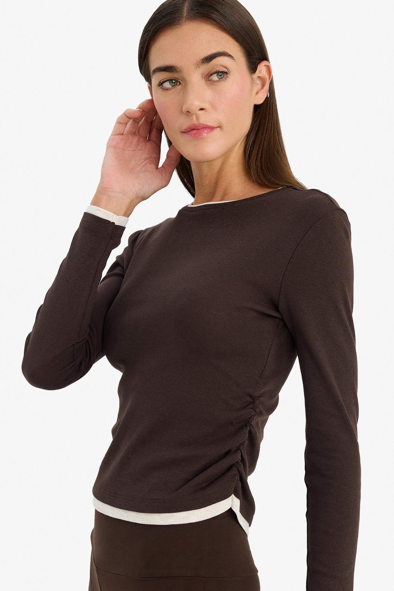 Slim Fit Dar Kesim Bisiklet Yaka Ribana Uzun Kollu Tişört