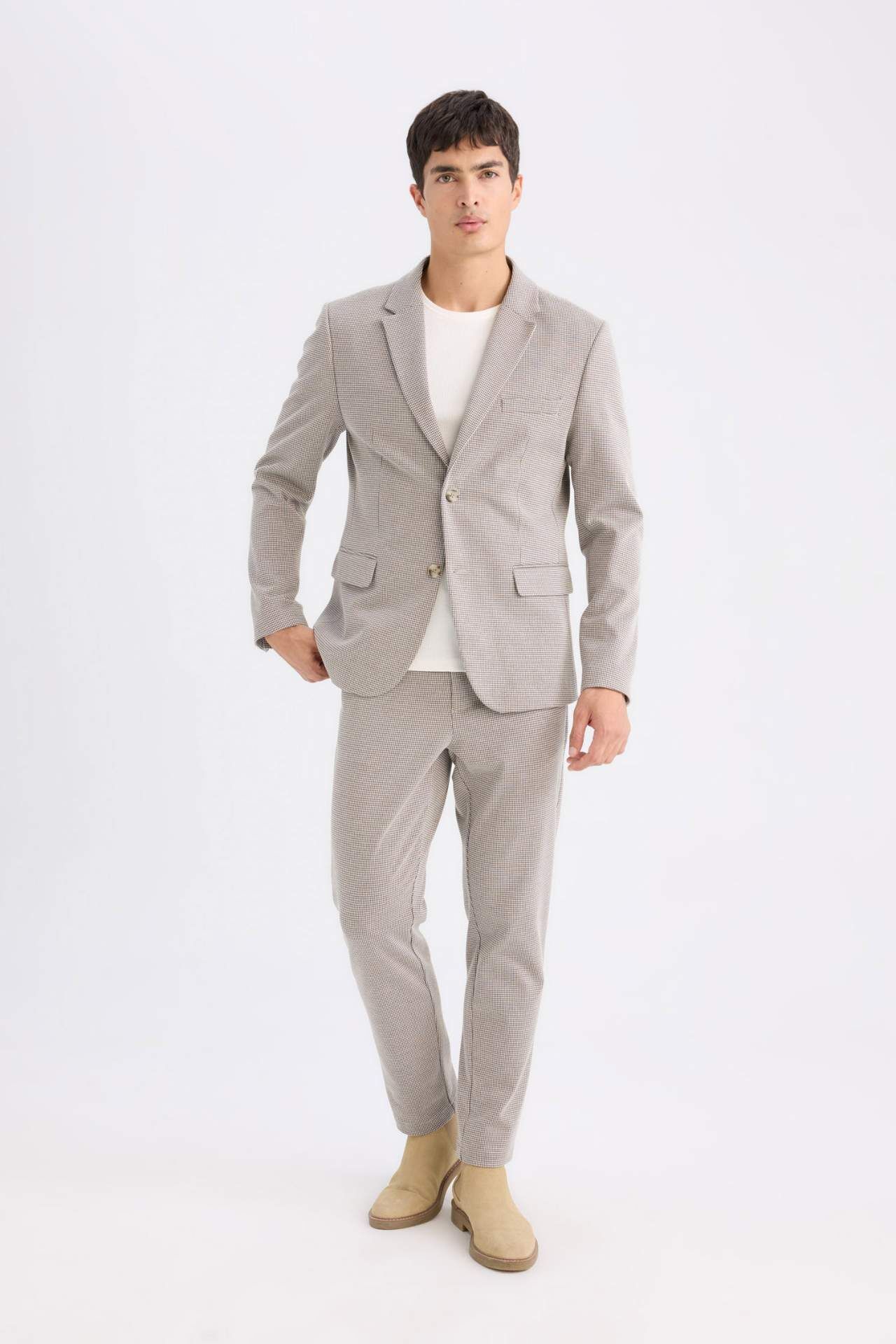 DeFacto Slim Fit Dar Kesim Ceket Yaka Düğmeli Blazer Ceket