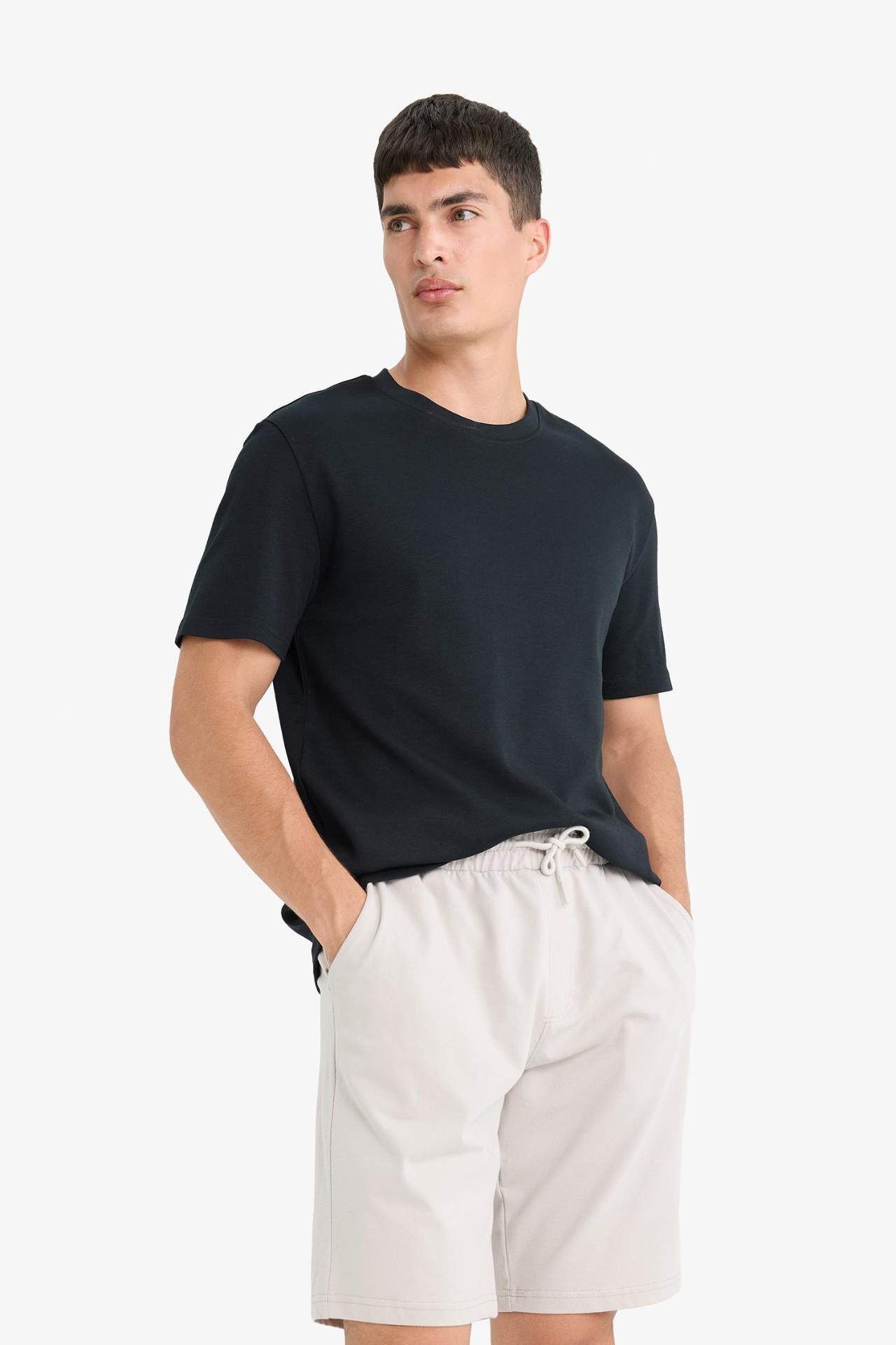 DeFacto Slim Fit Dar Kesim Cepli Pamuklu Basic Düz Bermuda Şort