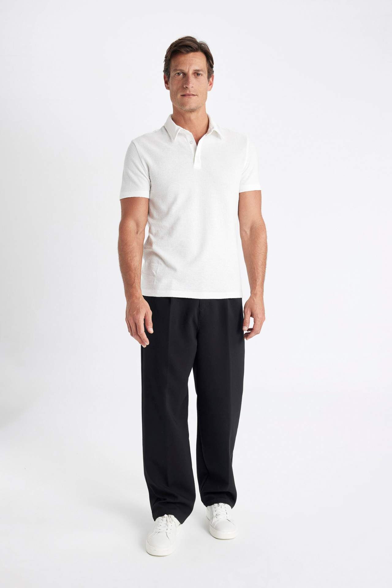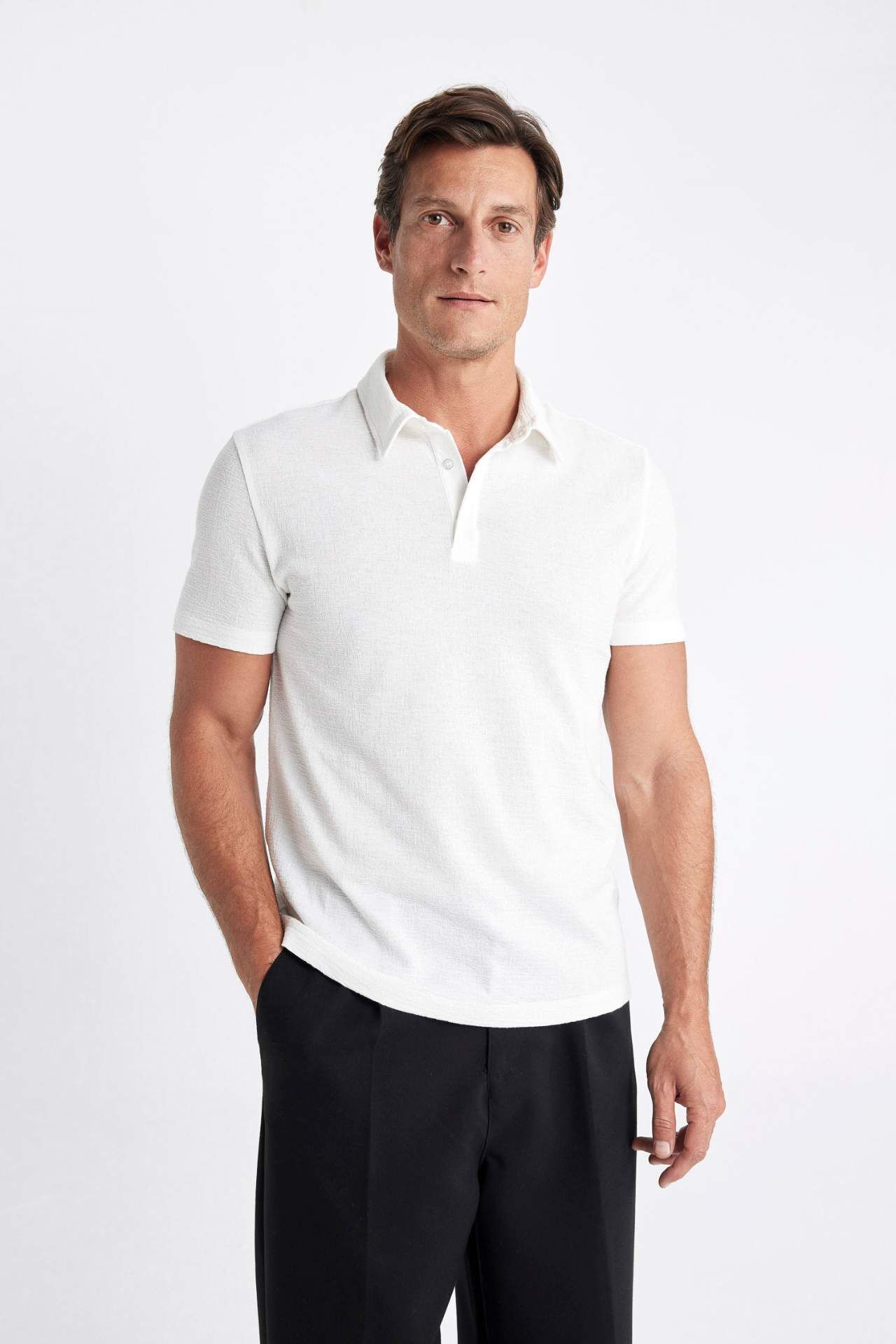 DeFacto Slim Fit Dar Kesim Dar Kesim Kısa Kollu Dokulu Polo Tişört C8573AX24SMWT32