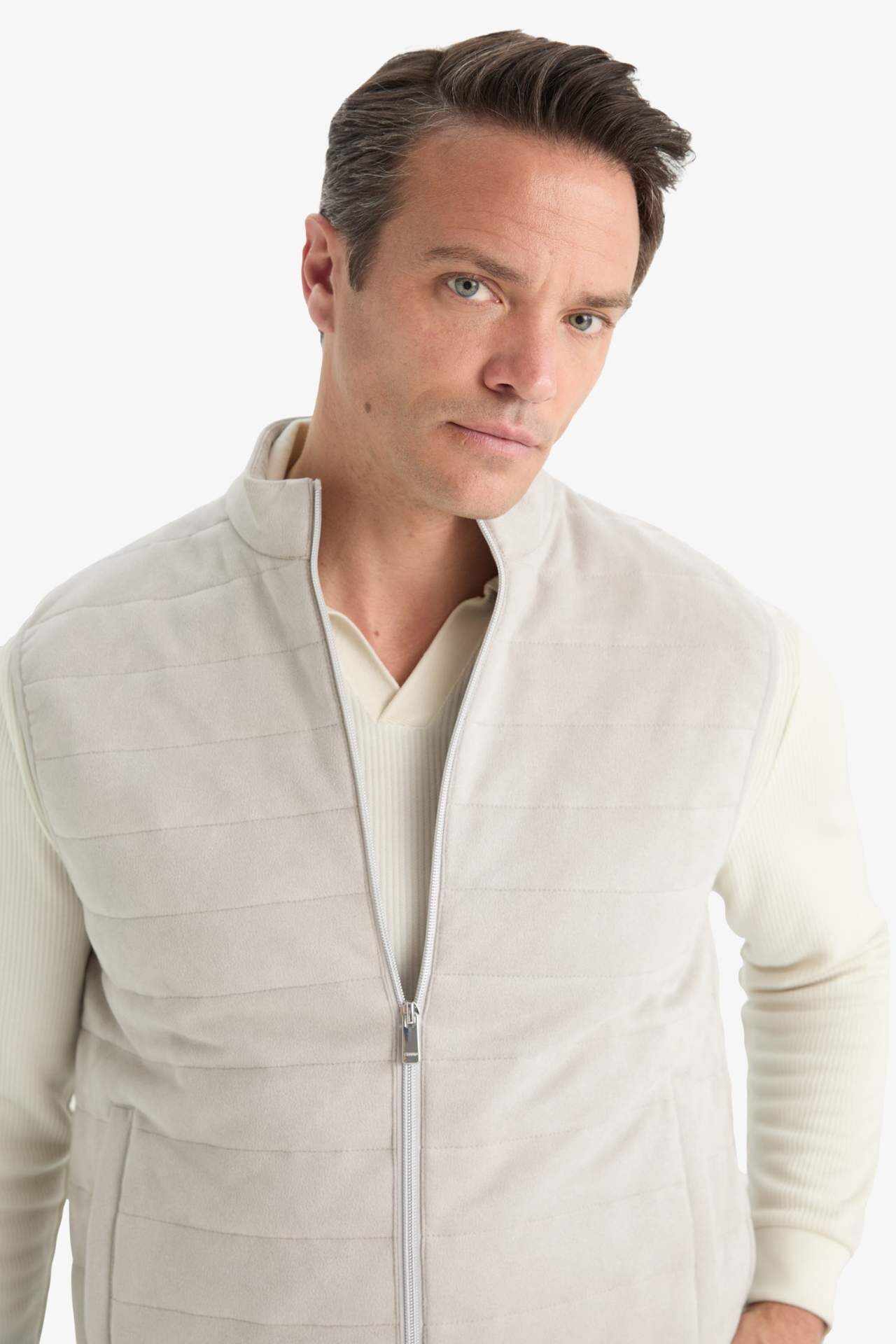Slim Fit Dar Kesim Dik Yaka Fermuarlı Süet Yelek F0246AX25AUGR184