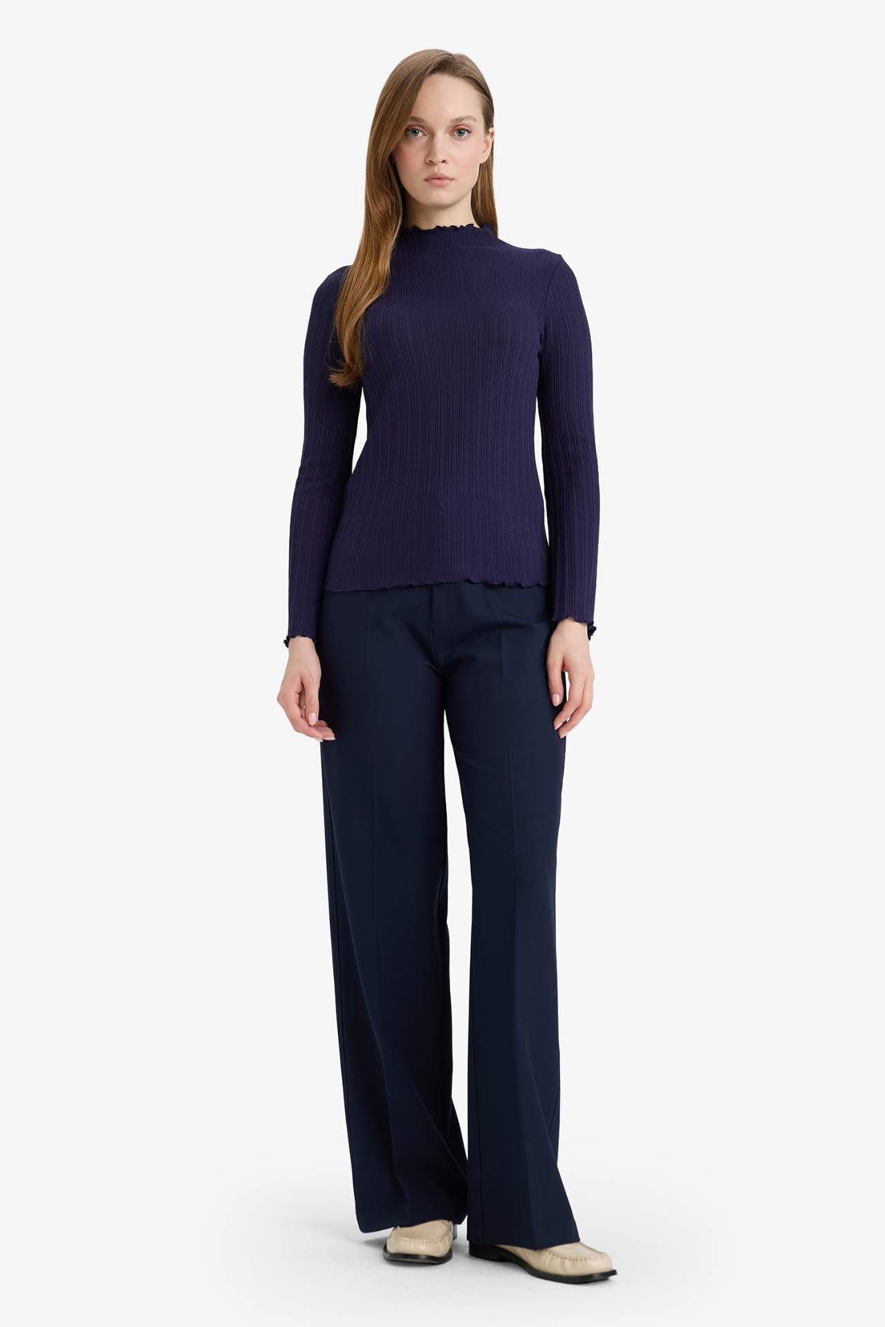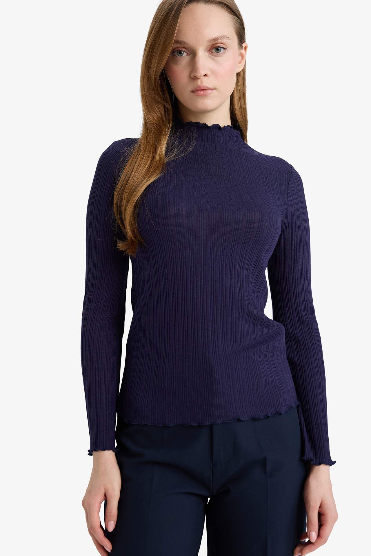 Slim Fit Dar Kesim Fitilli Kaşkorse Uzun Kollu Tunik