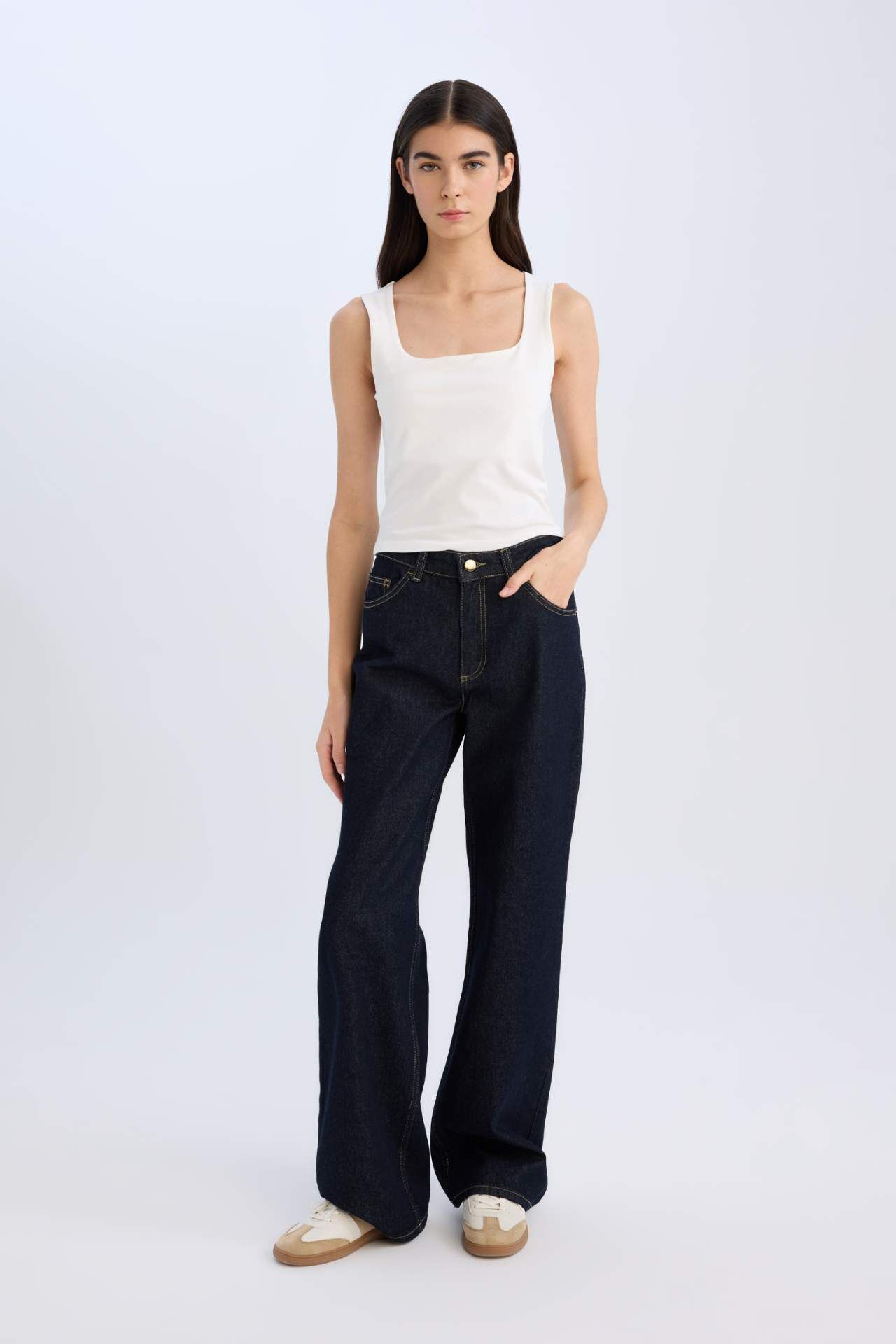DeFacto Slim Fit Dar Kesim Kare Yaka Basic Düz Beyaz Atlet