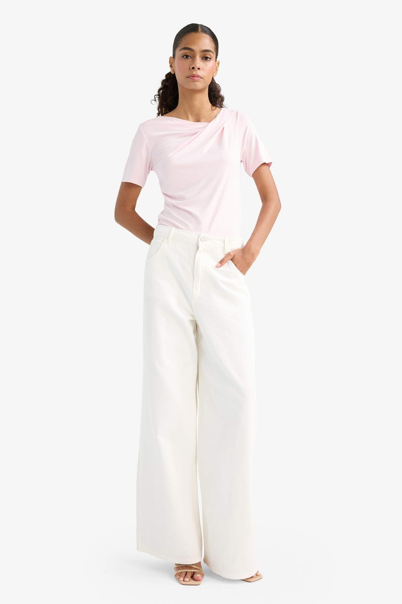 DeFacto Slim Fit Dar Kesim Kayık Yaka Kısa Kollu Tişört F8008AX25AUPN648