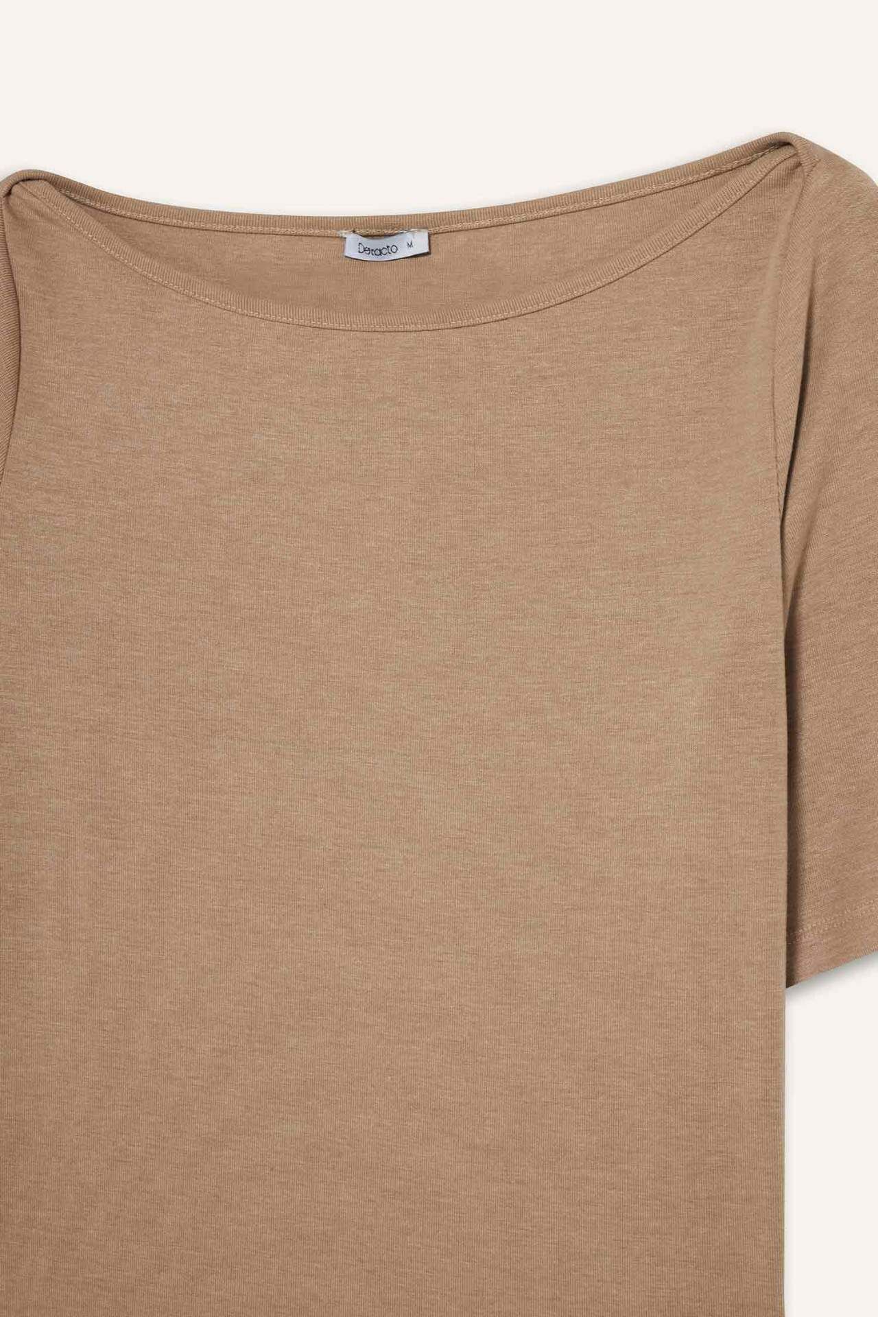 Slım Fıt Dar Kesim Kayık Yaka Ribana Uzun Kollu Tişört